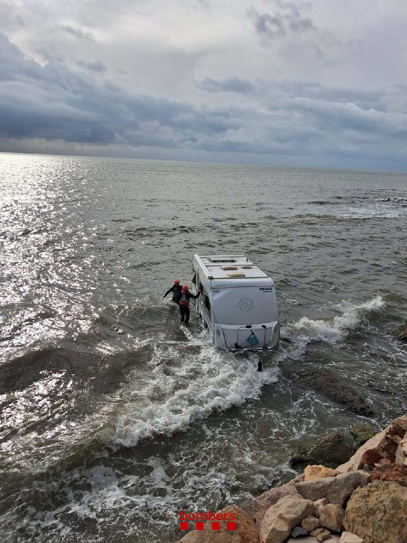 Els bombers de Catalunya han publicat en el seu perfil X que han estat mobilitzats per a comprovar que no hi havia ningú dins d’una caravana que ha estat arrossegada fins al mar Canareu.
