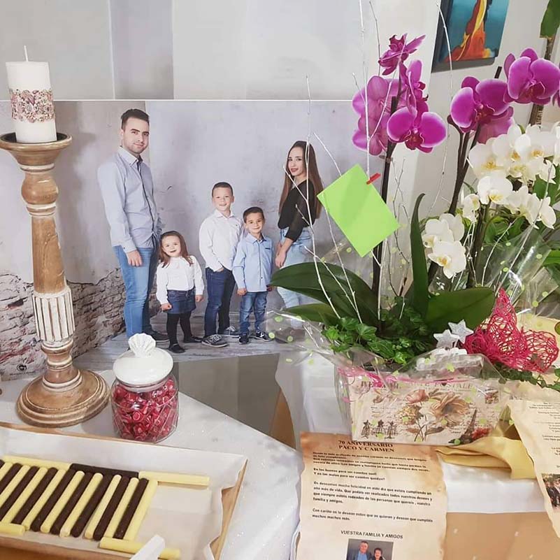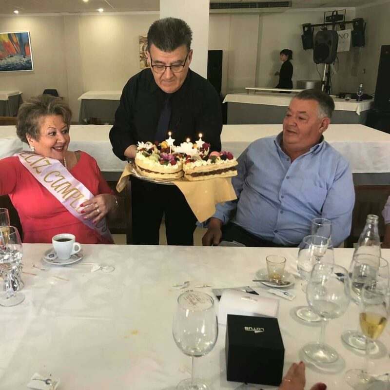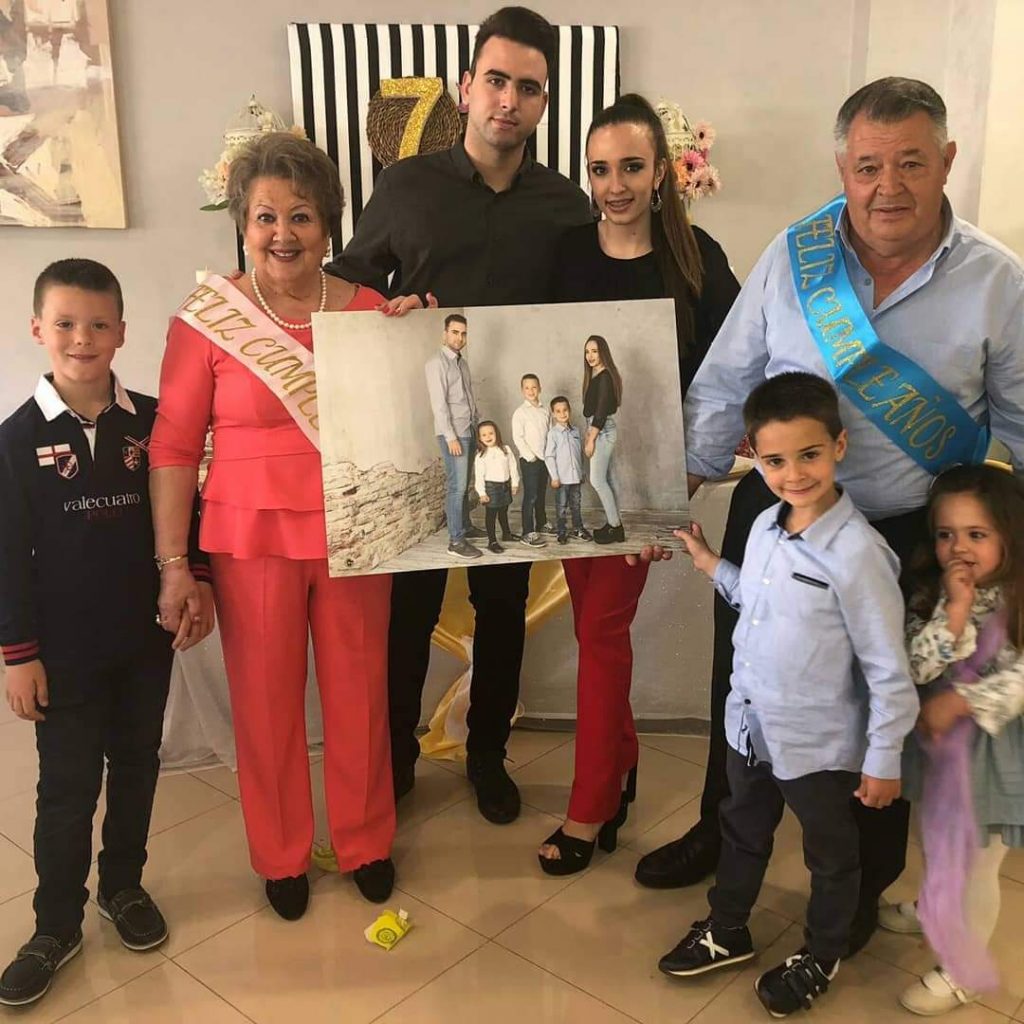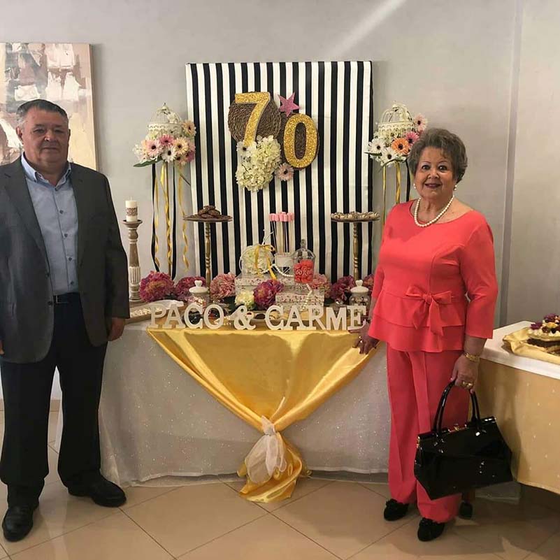 Festa 70 aniversari de Paco i Carmen, al Restaurant Neptuno, envoltats dels seus fills i néts.