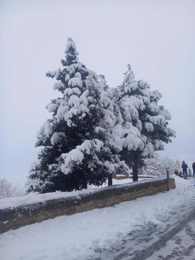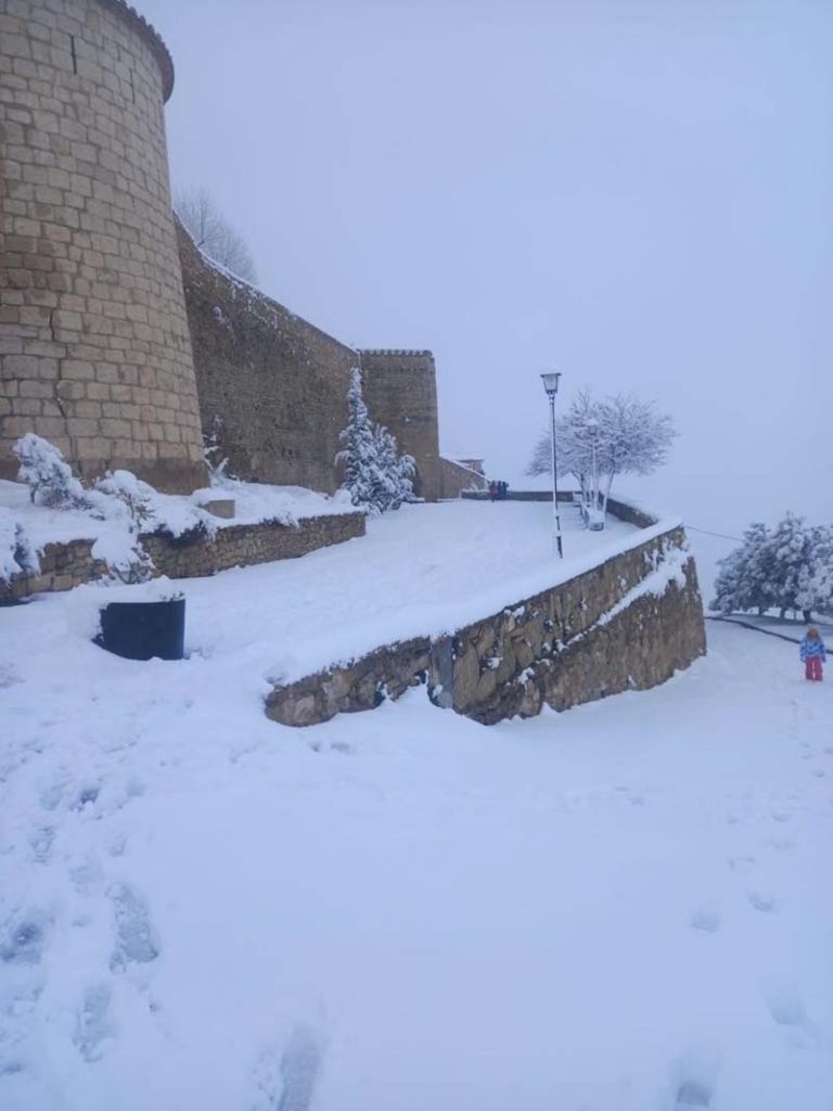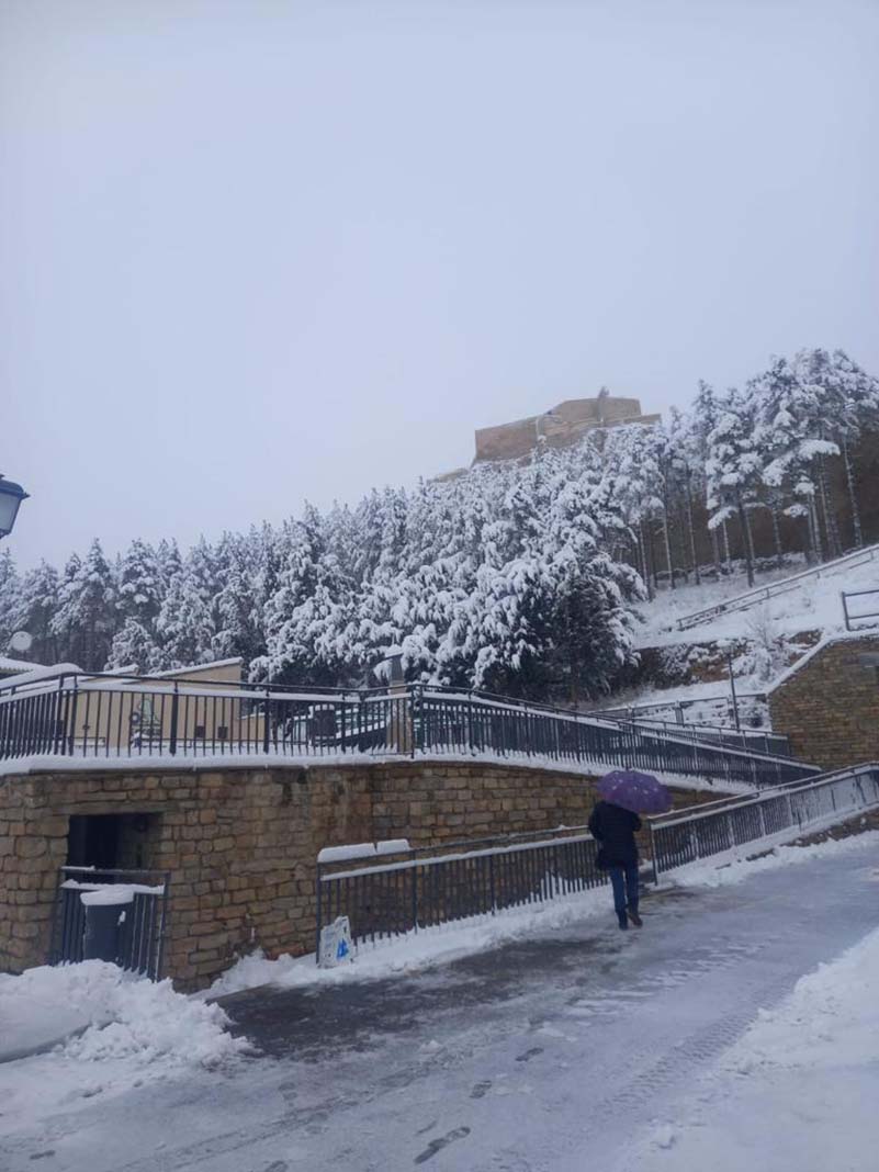 • Aquest matí Morella, com gairebé tots els pobles dels Ports ha clarejat totalment coberta de neu.