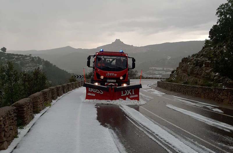 • Al voltant de les 16:00 hores un temporal de pluja i pedra s’ha deixat notar a Morella i la comarca dels Ports, on s’han arribat a registrar acumulats de fins a 40 l/m2, segons els registres d’avamet.