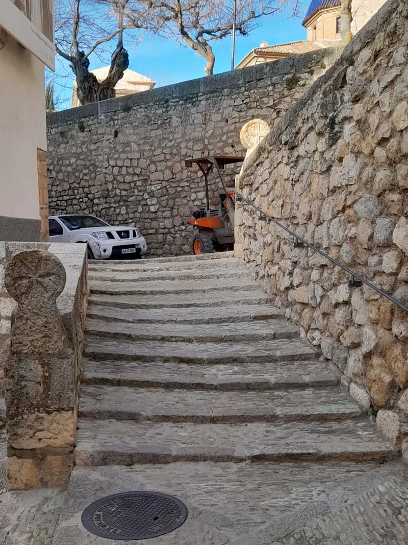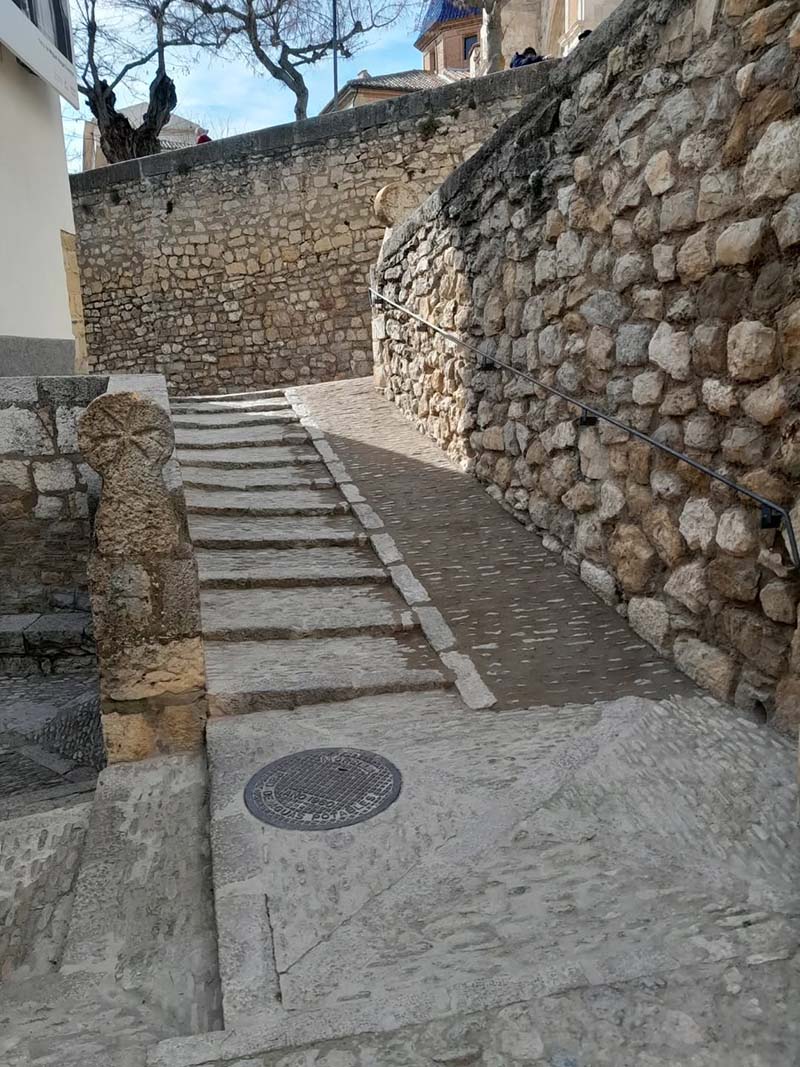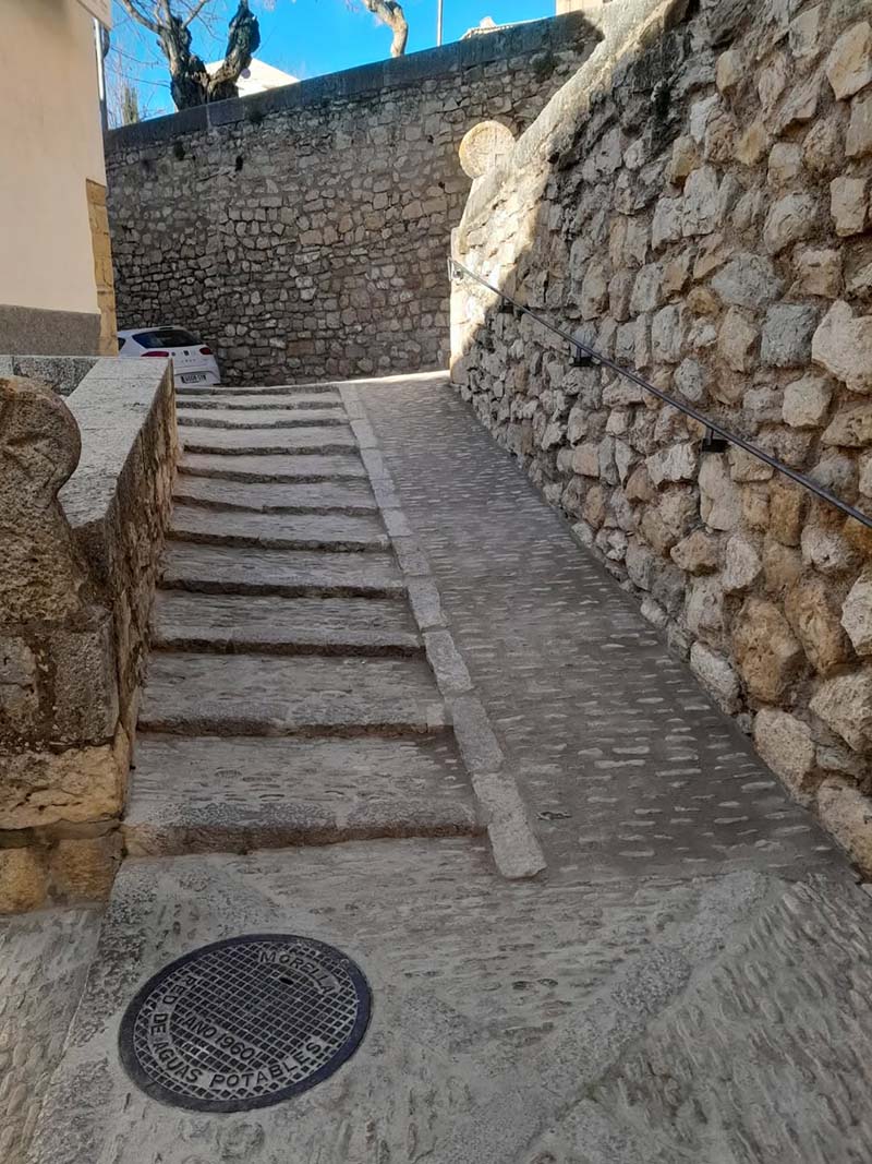 Els treballs han estat realitzats per la brigada municipal, reutilitzant el mateix paviment de pedra de riu extret de les escales existents, respectant així la imatge i idiosincràsia de Morella.