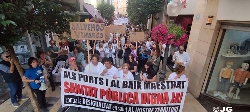 - Un miler de persones s’han manifestat esta tarde a Vinaròs exigint una sanitat pública digna a Els Ports i el Baix Maestrat, i contra la desigualtat en salut en el nostre territori.