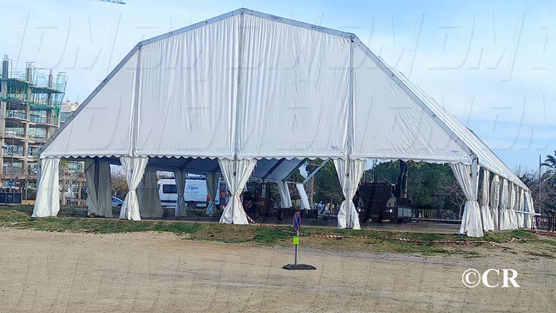 Els treballadors de l’empresa Carpas Maestrat estan començant la instal·lació de l’Envelat del Recinte del Carnaval, que acollirà la imposició dels corbatins i estandartes a les reines i reines grans i menuts de l’edició 2026 del Carnaval de Vinaròs, així com les diverses festes que es realitzen durant els 17 dies de festa.