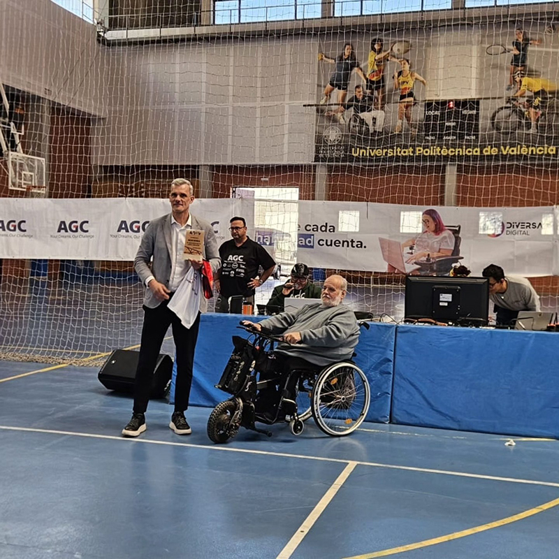 En este partido entre el ADIV Valencia y el CEM-AFANIAD Maestrat, Ramón Gisbert leyenda del baloncesto en silla de ruedas entrego un reconocimiento a Nacho Rodilla, por su apoyo al baloncesto en silla de ruedas desde la creación del ADIV.
