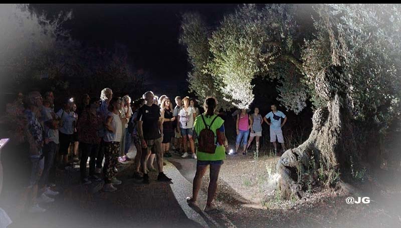 L’experiència multisensorial va constar d’una caminada nocturna entre oliveres monumentals fins descobrir un exemplar absolutament únic i de gran bellesa, l’Olivera de les Muletes, amb els seus més de 17 metres de copa, més de 13 metres de perímetre de tronc i gairebé 2000 anys d’Història viva al Maestrat.