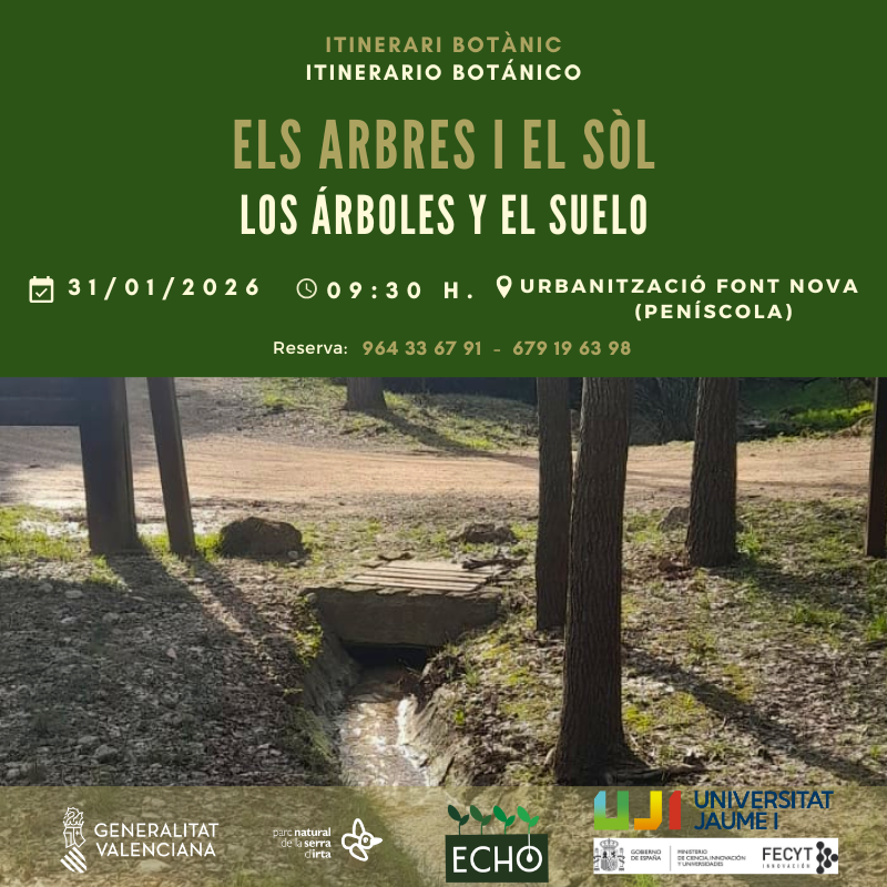 En aquesta edició, es farà un itinerari per l’interior de la Serra d’Irta, en el qual es veurà com ha evolucionat la vegetació al llarg del temps i coneixerem les espècies d’arbres més representatives del parc natural. A continuació, s’arribarà al Mas del Senyor, on es farà un mostreig on es recolliran diversos indicadors de la qualitat del sól entre totes les persones participants i es reflexionarà sobra la relació amb el sòl.