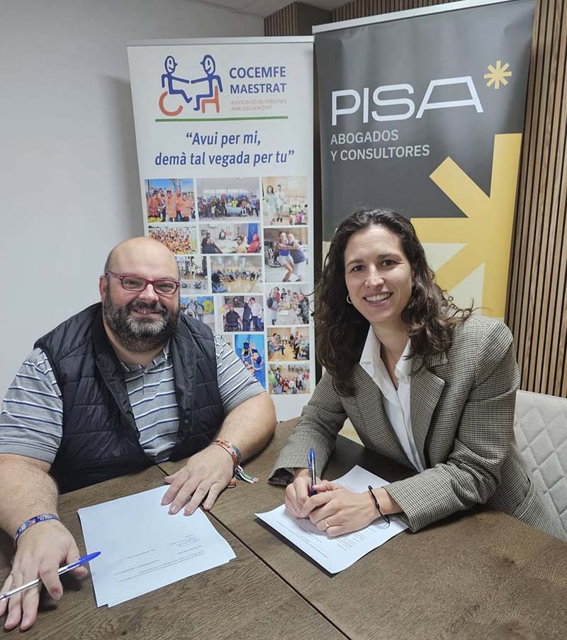 A COCEMFE Maestrat continuem treballant per millorar l’accés als recursos i suports de les persones amb discapacitat. Per això, hem signat un nou conveni de col·laboració amb PISA Abogados y Consultores, S.L.P., que permetrà oferir un assessorament jurídic més accessible a les nostres persones sòcies, a les seues famílies i també a l’entitat.