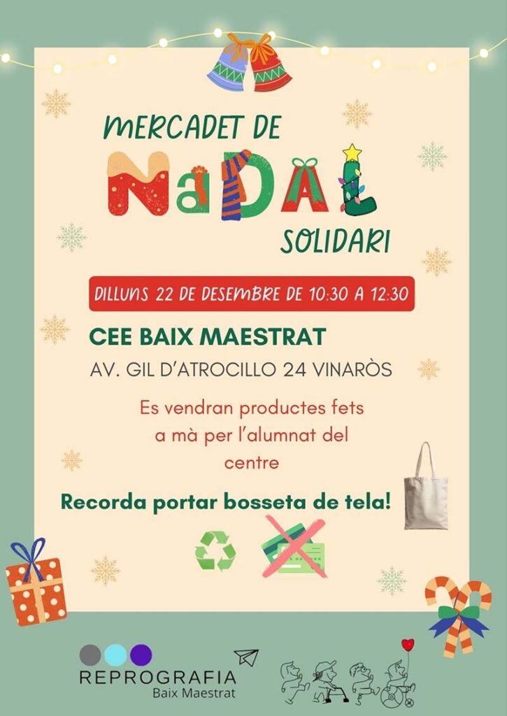 El CEE Baix Maestrat realitzarà, el proper dilluns 22 de desembre entre les 10:30 h i les 12:30 h, una nova edició del seu tradicional Mercadet Solidari de Nadal.