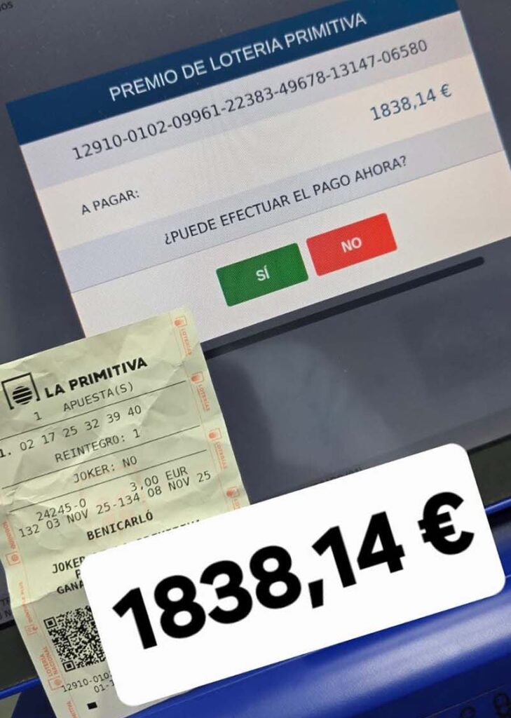 - La sort ha tornat a somriure a l’administració de loteria L’Entràeta de Benicarló. Aquest dilluns, el punt de venda ha validat un bitllet premiat amb un 5 en el sorteig de La Primitiva, continuant així amb la bona ratxa de premis que està vivint l’establiment.