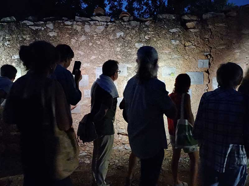 Iniciat l’esdeveniment per les autoritats, els artistes i els propietaris i, després d’explicar el sentit de l’acte, Laurent Gongora (artista internacional) va invitar els assistents a escriure els seus desitjos o secrets en un paper i a introduir-lo tot seguit a l’interior de l’àmfora, juntament amb l’oli. Els assistents van atendre la invitació i, després d’escriure en un paper, el van introduir al recipient.