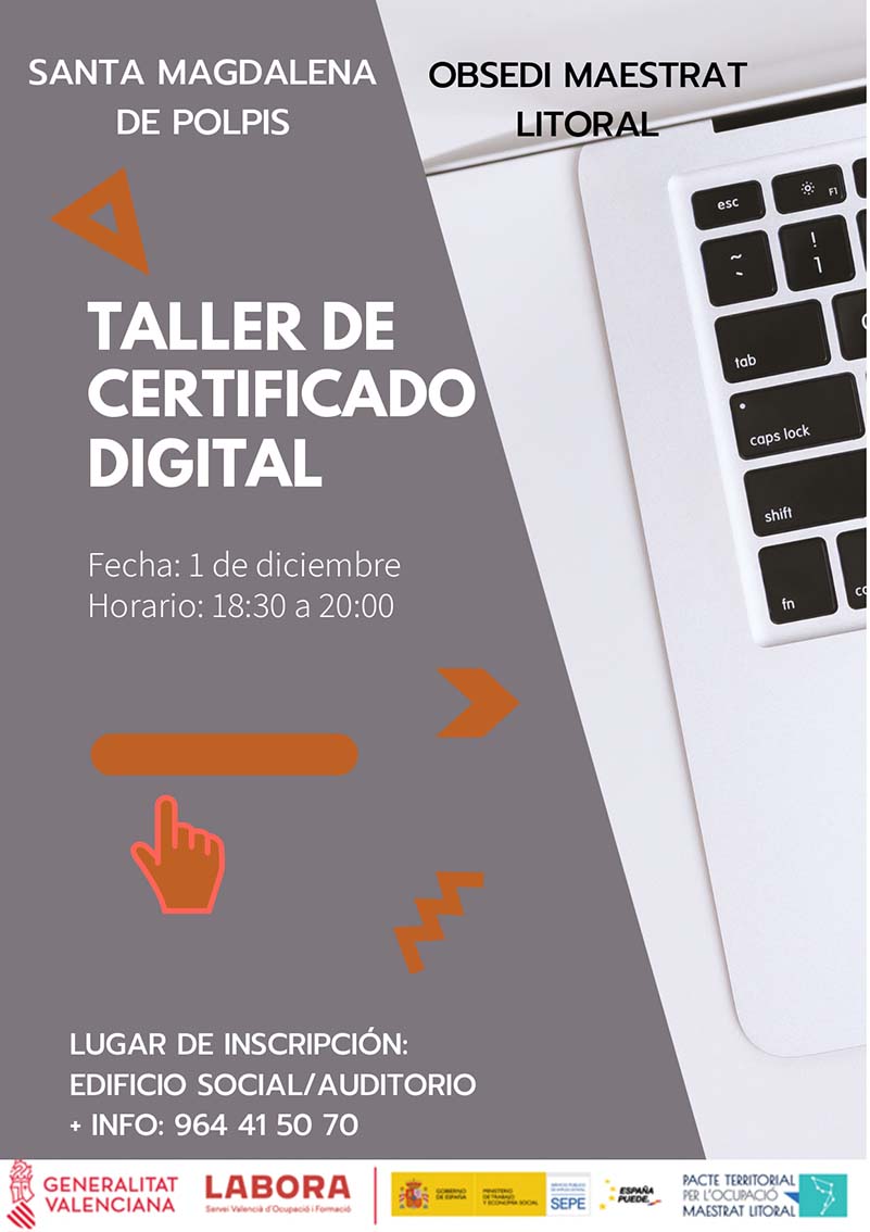En el primer dels tallers que s’impartirà es mostrarà als participants les diferents eines per a sol·licitar la vida laboral, obtenció de la cita prèvia del DNI, consulta d’informació i inscripció a Labora, cerca d’ocupació, …entre altres tràmits, mentre que el segon dels tallers se centrarà en com realitzar diferents gestions utilitzant el certificat digital.