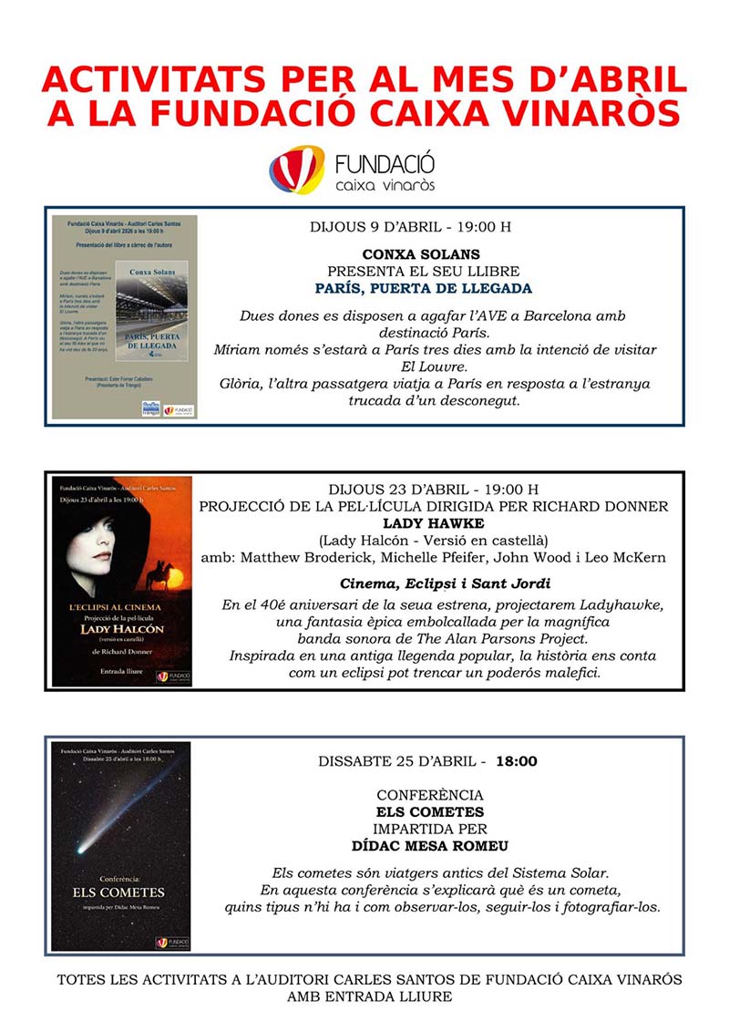 La Fundació Caixa Vinaròs presenta les activitats del mes d’abril