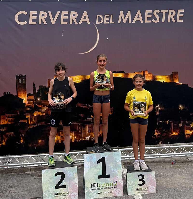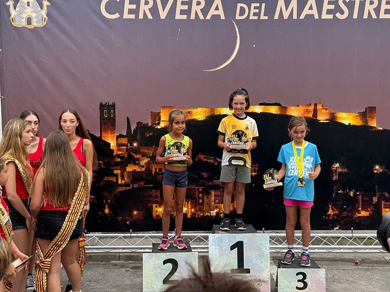 I la XLI Carrera a Peu de Cervera del Maestre, cursa a 5 voltes, amb un total de 5’5kms en categoria absoluta. Hem tingut a Bea Sorlí, qui ha estat la guanyadora. I en les diferents categories han participat més de 20 atletes destacant els resultats següents: iniciació, amb Luis Albarrán-1r; benjamí, amb Miquel Coll-3r, Alba Delshorts-2a; aleví, Laia Delshorts-1a, Elsa Albarrán-3a, Ferran Yáñez-2n; infantil, Darío Abasolo-1r, Eric Carda-3r, Joana Grañana-2a, Abril Grañana-3a; cadet, Eric Remolina-1r.