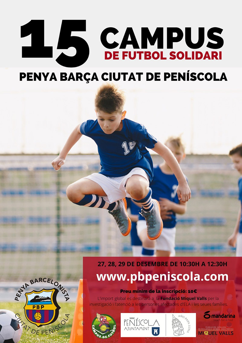El área de Deportes del Ayuntamiento de Peñíscola, junto a la Penya Barcelonista del municipio ha presentado la décimo quinta edición del Campus de Fútbol Solidario que acogerá la localidad durante los días 27, 28 y 29 de diciembre.