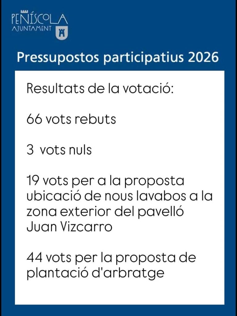L’Ajuntament de Peníscola ha fet públics els resultats de les votacions corresponents als Pressupostos Participatius 2026, un procés que permet a la ciutadania decidir sobre inversions municipals de manera directa i transparent.