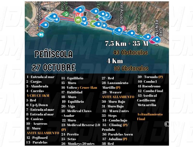 El recorregut curt consta de 4 km amb 30 obstacles, per altra banda, també està el recorregut llarg amb 7,5 km i un total de 43 obstacles. L’empresa que fa la carrera ja es troba muntant els obstacles al passeig marítim, l’eixida i la meta es troben al costat de la Touris Info.
