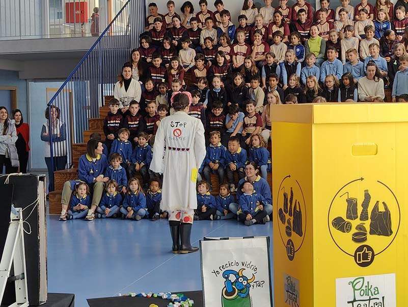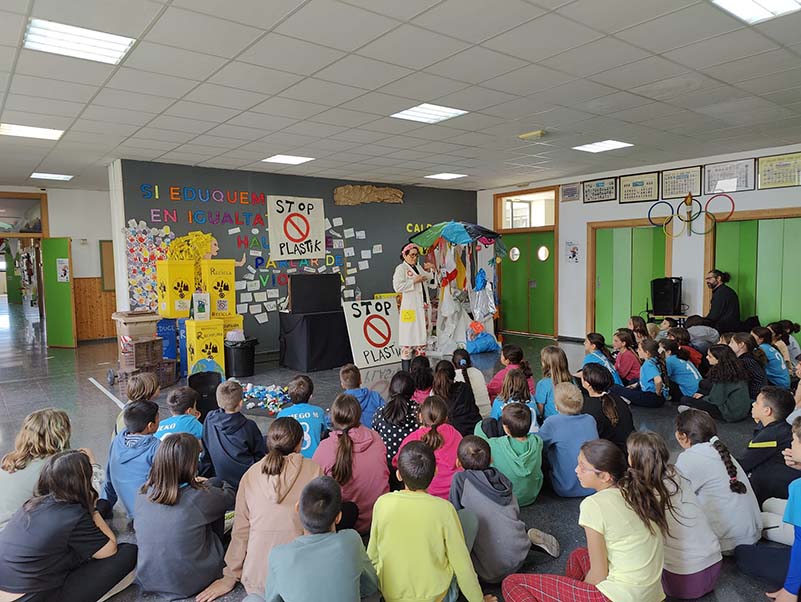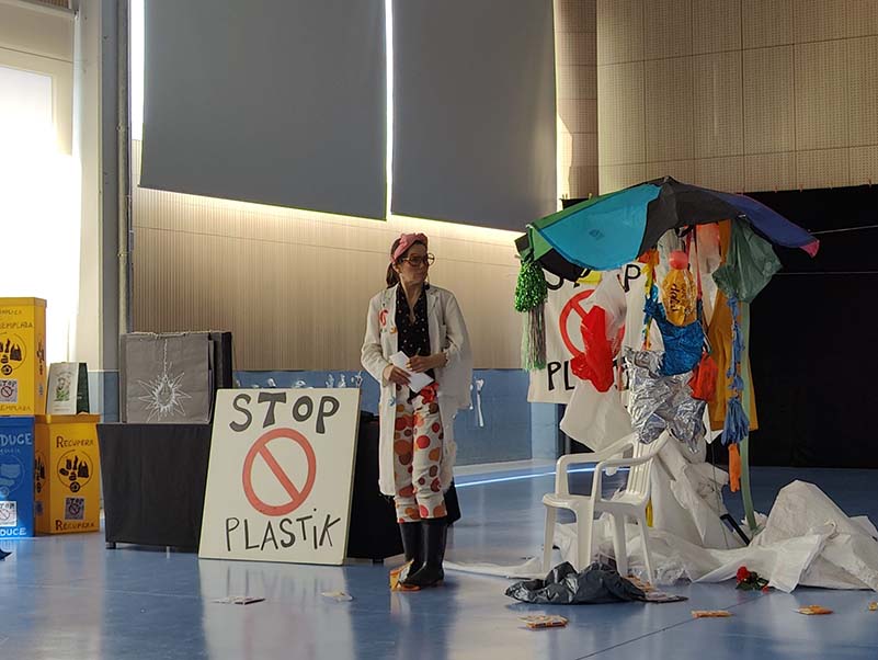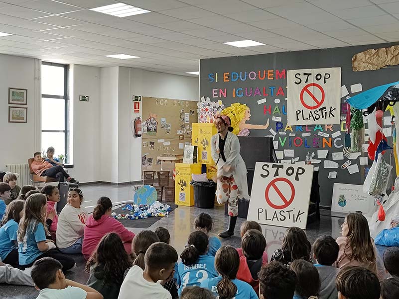 A més, els alumnes de tots dos centres van gaudir amb el taller teatralitzat de manera participativa, interactuant amb el personatge principal de l’obra, una professora una mica estrafolària, que els ha compartit informació sobre el perill de l’abús del plàstic i unes correctes pautes de reciclatge i compostatge.