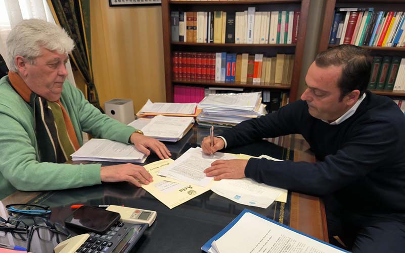 • El alcalde, Andrés Martínez, ha firmado ante notario la documentación que se remite a la propiedad del inmueble, incluyendo el acuerdo de pleno
