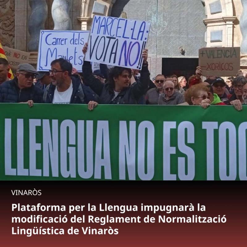 Plataforma Per La Llengua – País Valencià ha anunciat, a través d’una nota de premsa en els seus canals de difusió, que “impugnarà legalment” la modificació del Reglament de Normalització Lingüística de Vinaròs, que ha esdevingut aprovada en el plenari extraordinari del dimecres 1 d’abril.