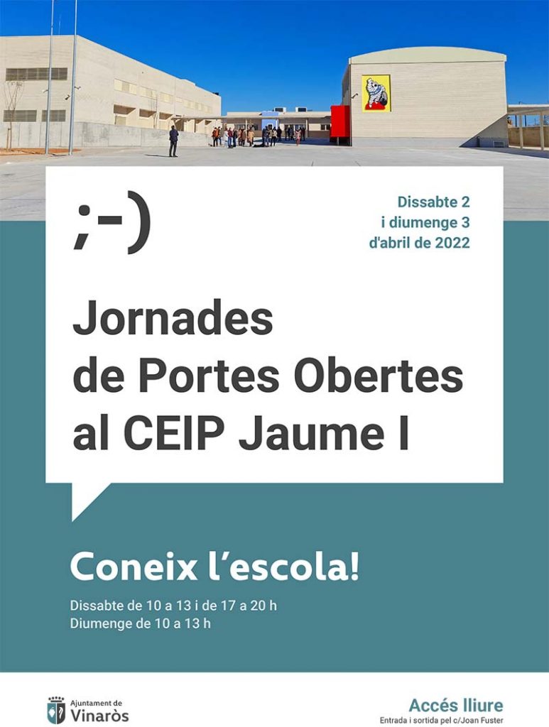 L’Ajuntament de Vinaròs ha programat una jornada de portes obertes al nou CEIP Jaume I per al pròxim cap de setmana, dissabte i diumenge 2 i 3 d’abril.