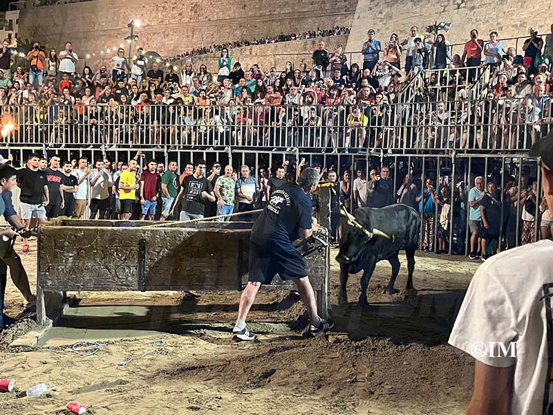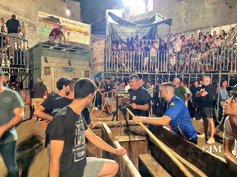 La plaça plena de gom a gom. Tot i que el moment d’embolar ha sigut una mica tensos perquè la novetat de la guillotina no ha funcionat, finalment han hagut de tallar en la forma tradicional.