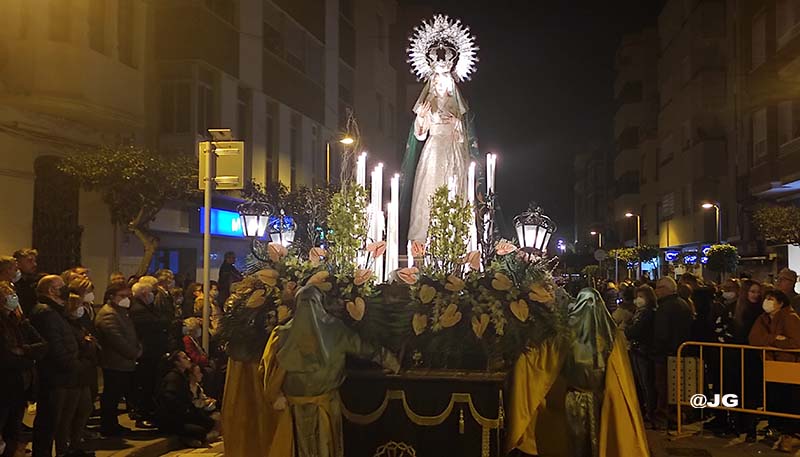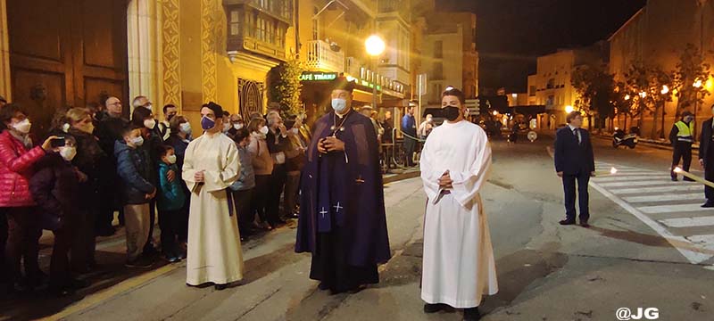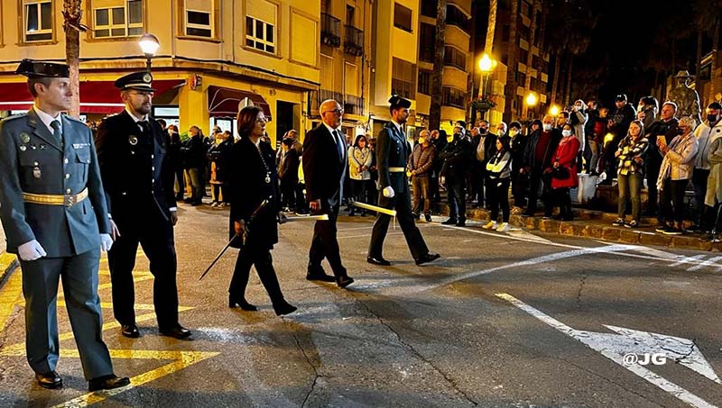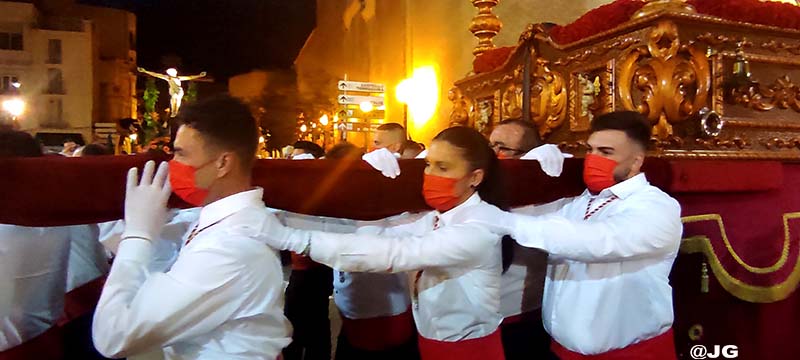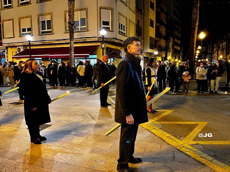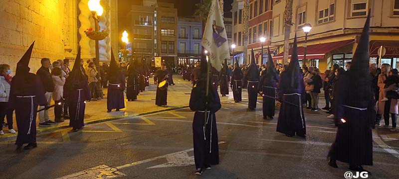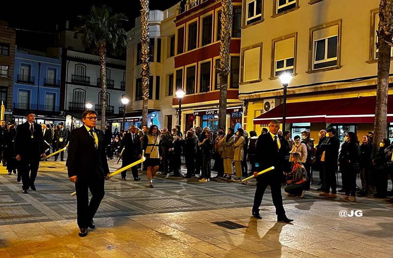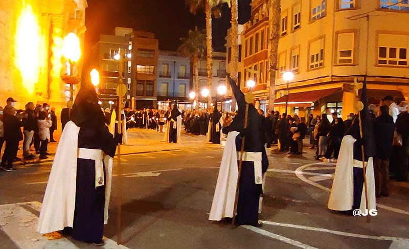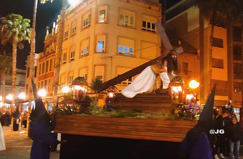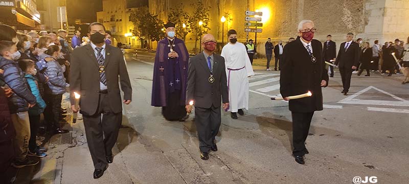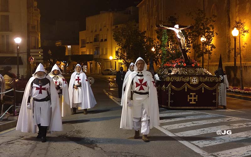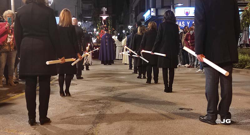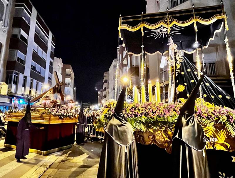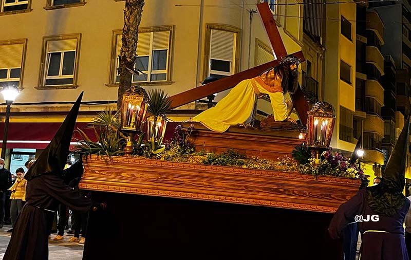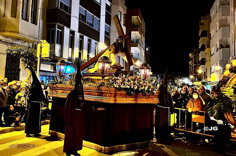 Participen en la solemne Processó els següents Passos: Oració a l’Hort de les Oliveres, Santíssim Crist de la Flagel·lació, Verge de l’Esperança, Jesús Nazareno i Crist de l’Asil, pels carrers Ferreres Bretó i Avda. Juan Carlos I.