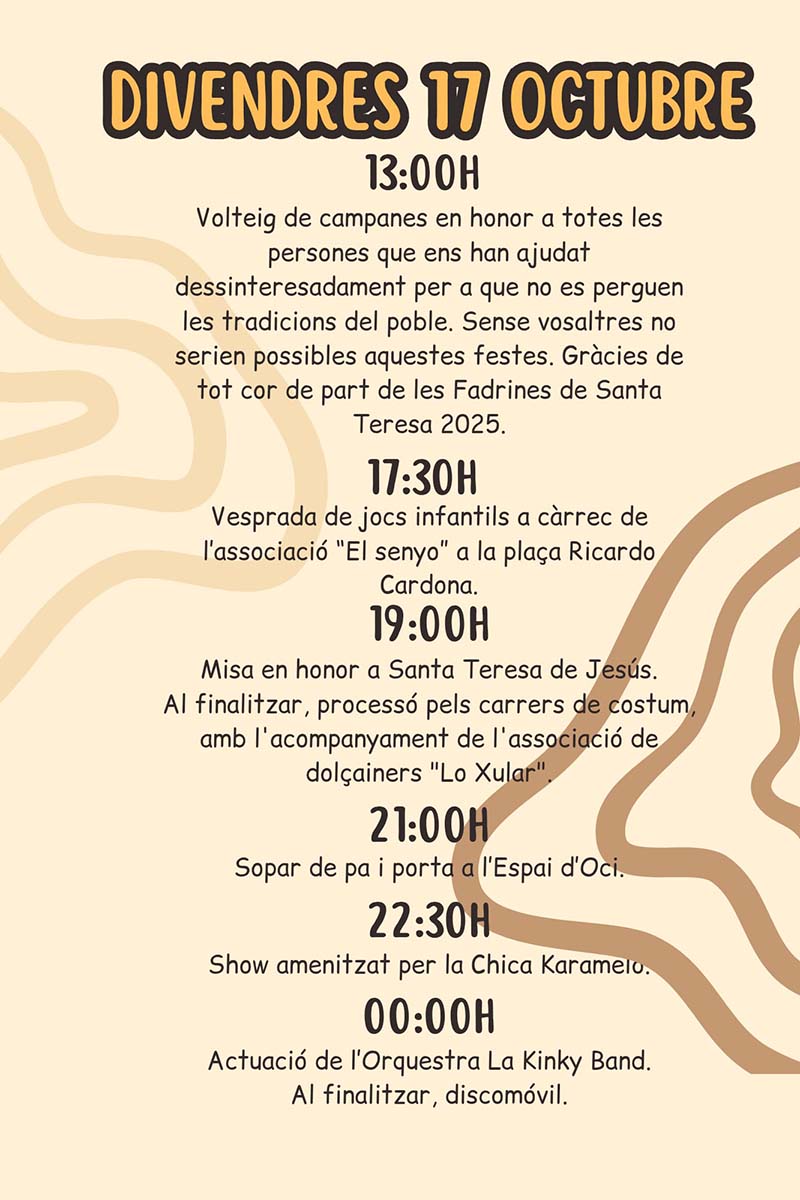 Programa de la Festivitat de Santa Teresa d’Alcalà de Xivert