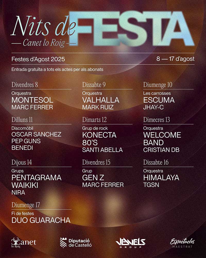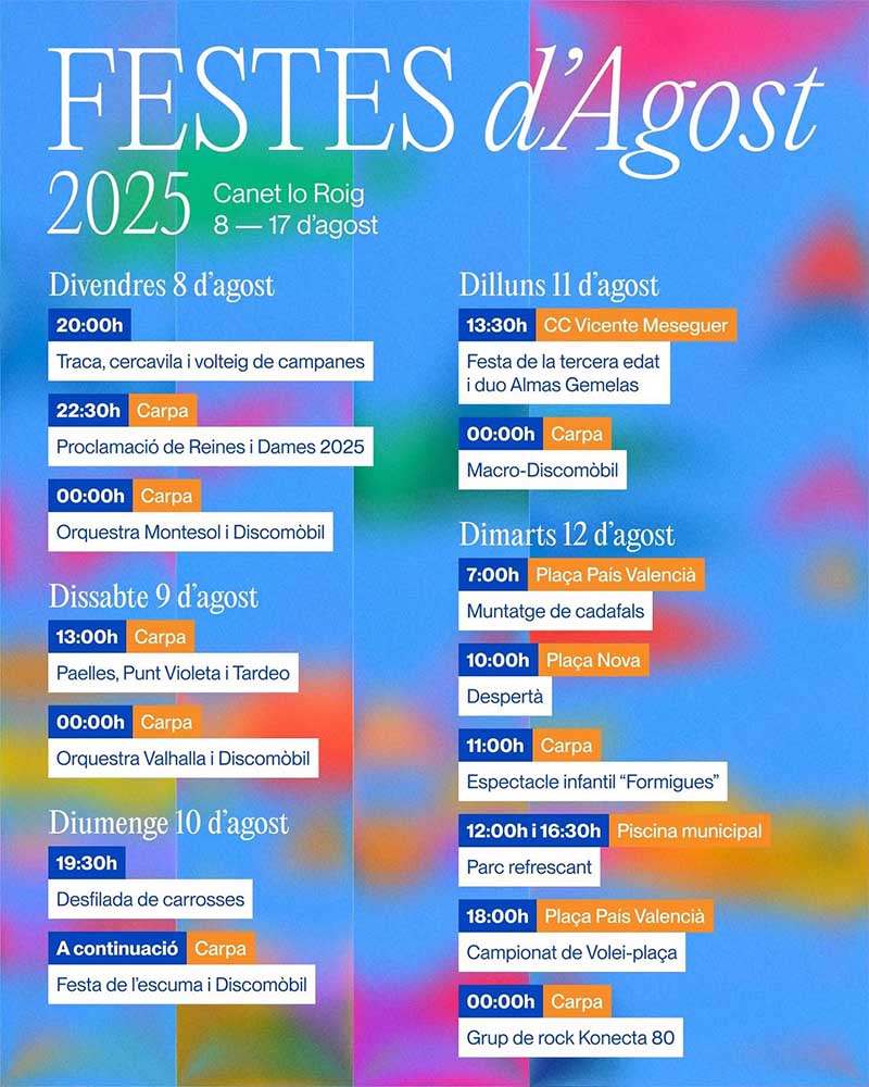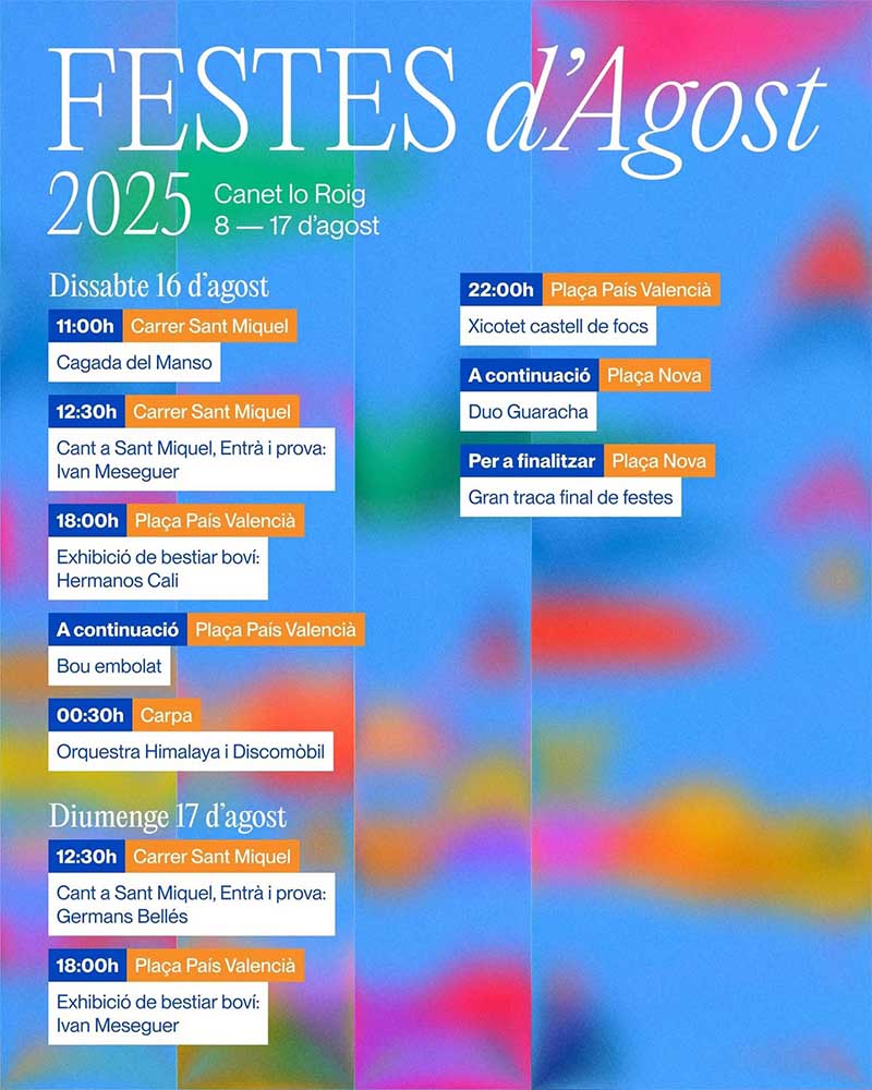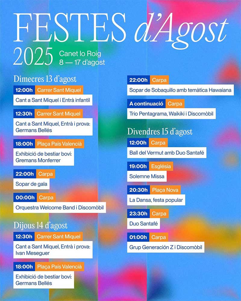 Programació d’actes de les Festes d’Agost de Canet lo Roig 2025