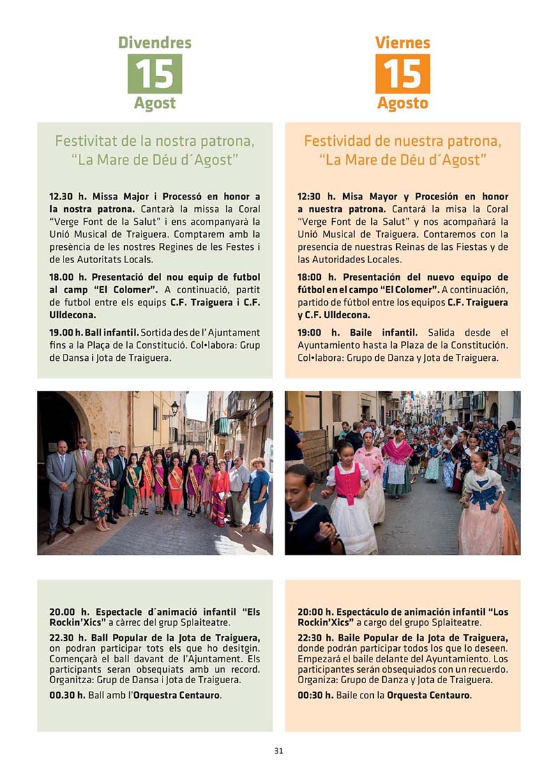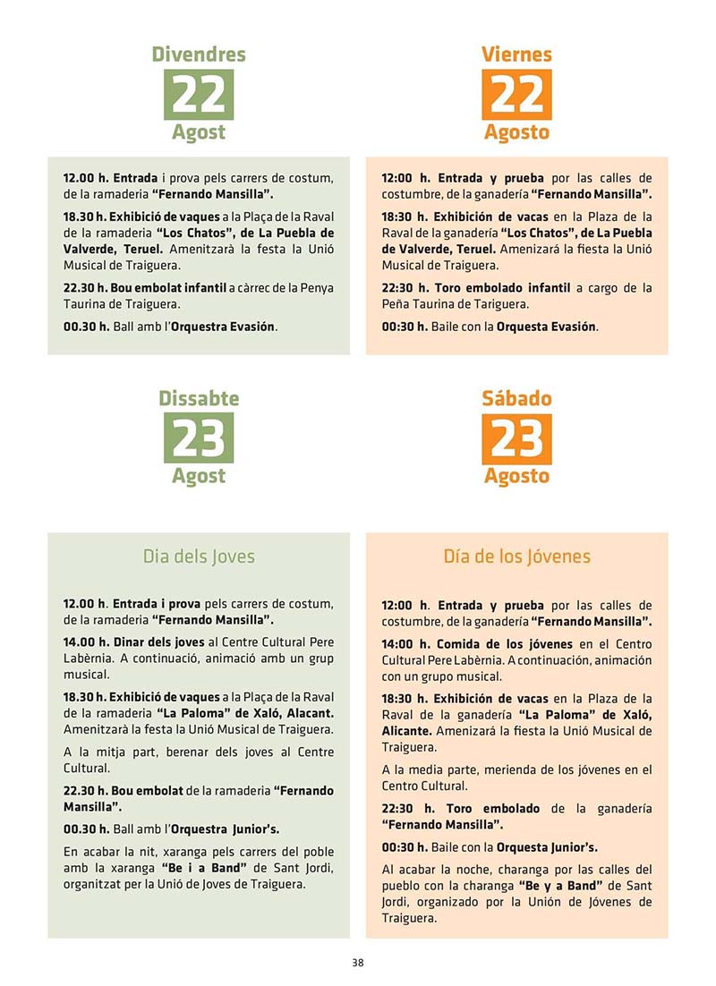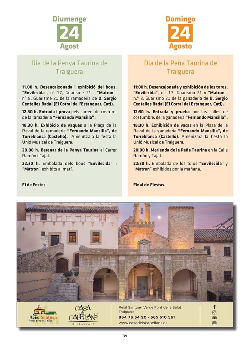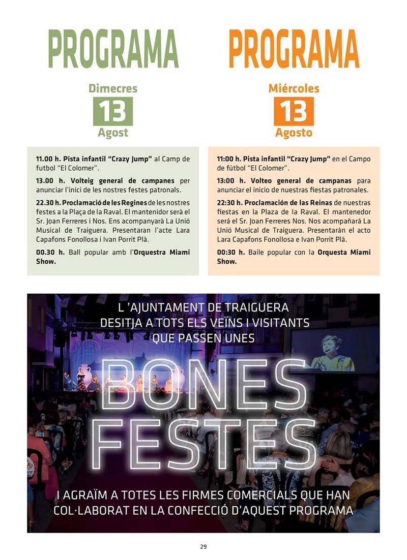• Amb la proclamació de les reines, Traiguera inicia deu dies intensos de festes, amb balls, activitats per a tots els públics i actes taurins.