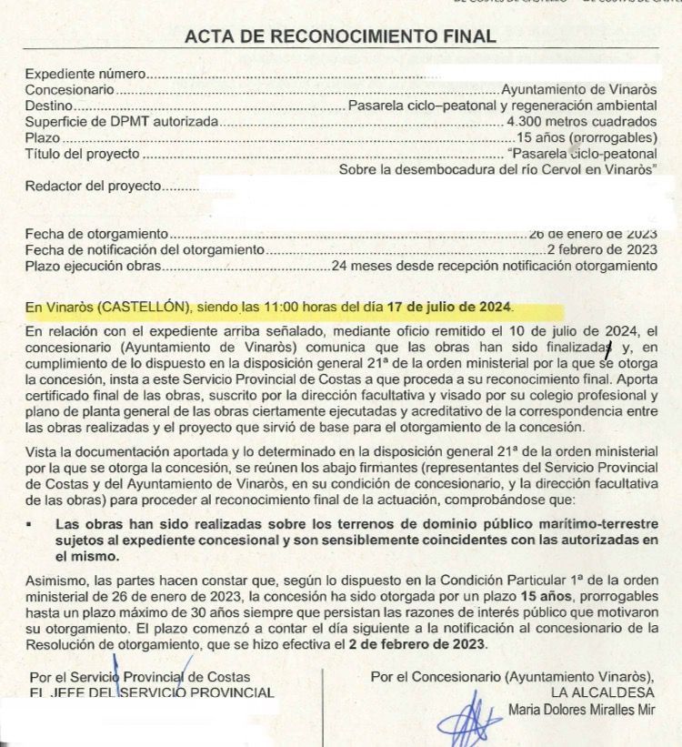 Esperem que totes les traves administratives i burocràtiques que puguin haver-hi se solucionen el més aviat possible i tots els ciutadans de Vinaròs puguem gaudir d’aquesta obra el més aviat possible.