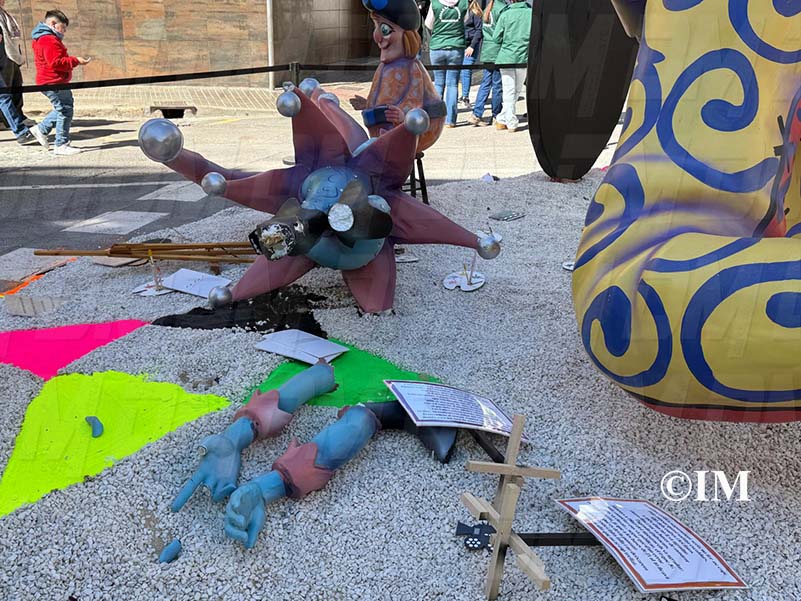 Entre els danys més destacats, s’ha vist afectat un ninot de la falla La Carrasca, així com un dels remats centrals de la Falla Benicarló, que enguany ha sigut guanyadora del primer premi en la categoria de falles grans.