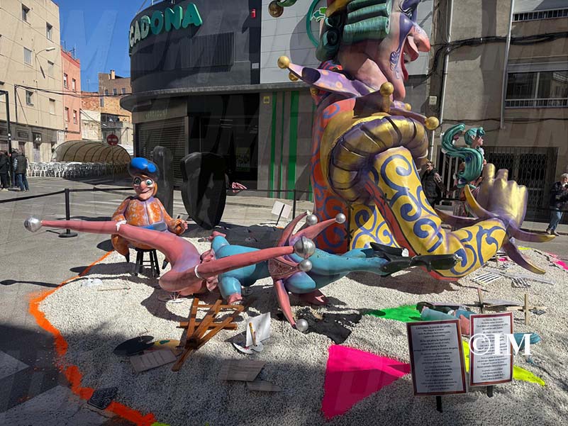 El fort vent registrat durant la matinada del 15 de març ha provocat diversos desperfectes en alguns monuments de les Falles de Benicarló a Benicarló, una vegada ja s’havien fet públics els premis d’aquesta edició.