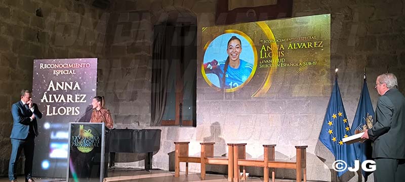 En el marc de la celebració, l’Ajuntament de Peñíscola ha fet entrega d’un reconeixement especial a la jove portera peñiscolana Anna Álvarez, que ha destacat pels seus mèrits esportius fins a convertir-se en internacional amb la selecció espanyola Sub-17. Una carrera prometedora que la consolida com a referent per a la joventut del municipi. El guardó ha sigut recollit pel seu germà, Íker Álvarez Llopis.