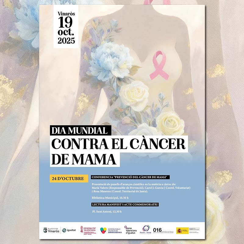 La jornada s’iniciarà el 24 d’octubre a les 10:30 h a la Biblioteca Municipal, amb la xerrada “Prevenció del càncer de mama: explicació panels d’avenços científics”, amb Maria Valero, responsable de prevenció; Carol J. García, coordinadora del voluntariat i Rosa Museros, coordinadora territorial de juntes.