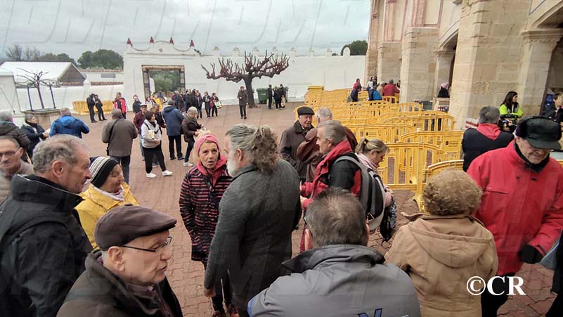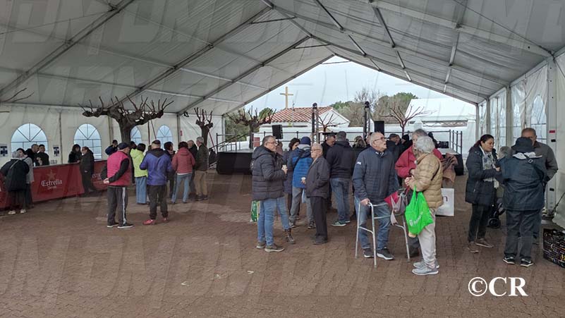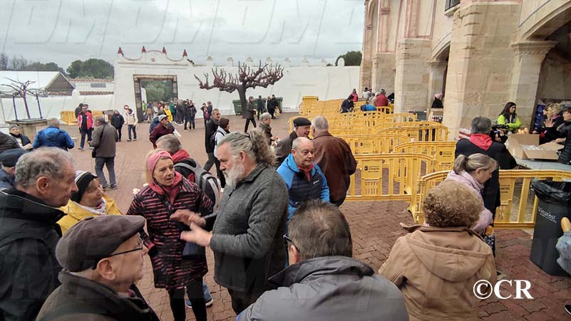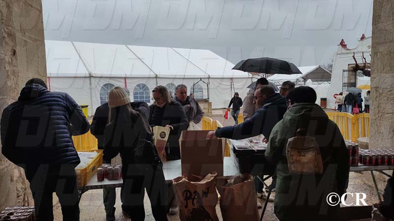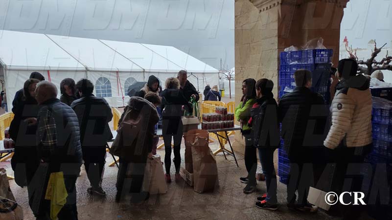 Tot i la forta pluja, centenars de persones han pujat fins l’Ermita de la Misericòrdia per poder recollir les bosses amb productes.