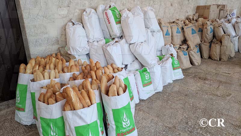 S’han repartit diverses bosses amb diferents productes alimentaris, com pa, llonganisses i begudes com cervesa, aigua i mistel·la.