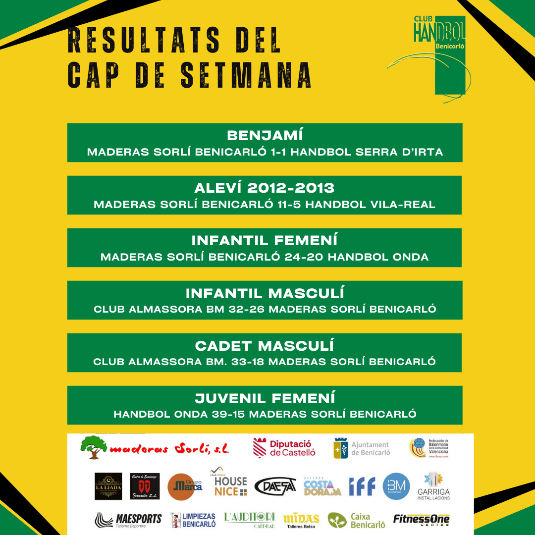 Pel seu costat, el Benjamí va empatar enfront de l’Handbol Serra d’Irta. l’Infantil Masculí i el Cadet van perdre el dos enfronts del equips del Club Almassora Balonmano per 32 a 26 i 33 a 18, respectivament. Per últim, el Juvenil Femení tampoc va poder sumar els 2 punts i va perdre per 39 a 15 enfront de l’Handbol Onda.