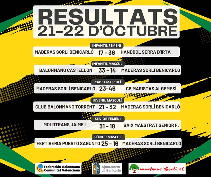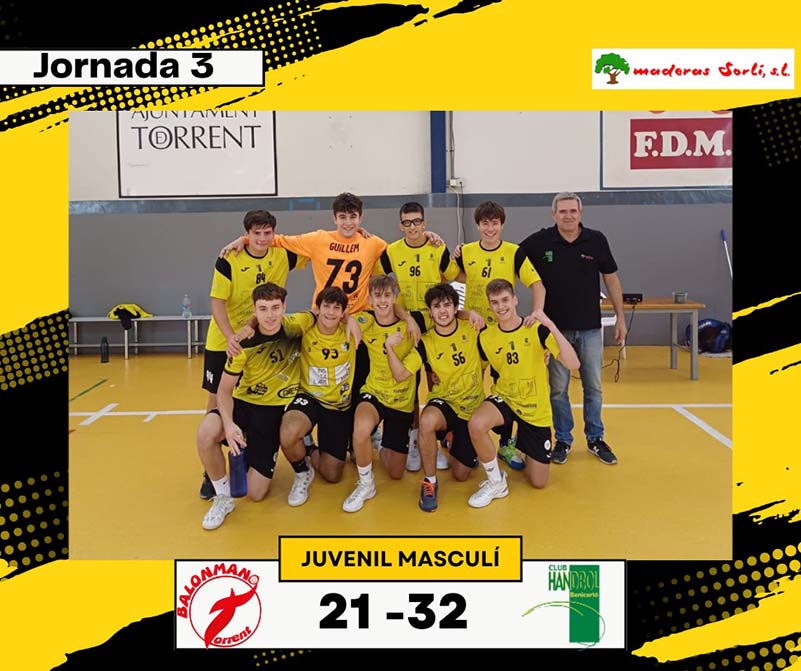 - El Juvenil Masculí “Maderas Sorlí Benicarló” va ser l’únic equip que va guanyar i ho va fer amb contundència a la pista del Balonmano Torrent. Victòria per 21 a 32.