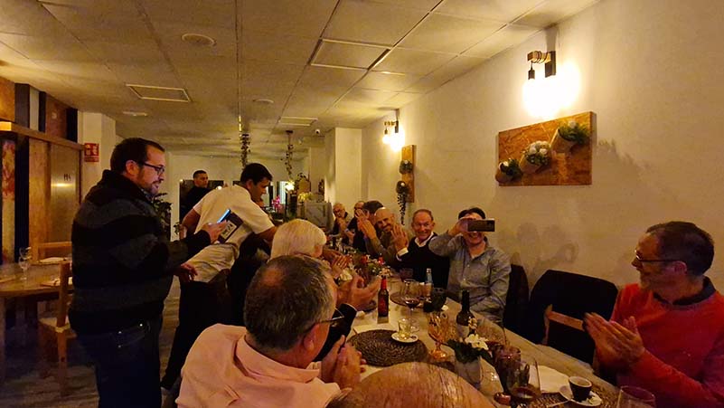 Un total de 22 persones es van donar cita aquesta vegada en un conegut restaurant del passeig marítim. Al voltant d’una llarga taula i un excel·lent sopar van compartir unes hores tots junts. Una vegada més, Pablo Castell va posar la nota d’humor fent un discurs “alternatiu” al parlament oficial, on va avançar sorprenents “primícies” informatives, com impressionants novetats sobre el Carnaval que es podrien seguir pel Vinaròs News de forma “immersiva” i en “realitat augmentada”. Tot seguit, el coordinador Emili Fonollosa va començar la seua habitual intervenció destacant, una vegada més, la gran oferta professional d’informació comarcal que hi ha a hores d’ara, començant pel màxim referent que és Diari del Maestrat. Va agrair la col·laboració constant dels qui aporten continguts, tots desinteressadament i l’ajuda del reduït grup d’entitats i empreses que fan possible el Vinaròs News.