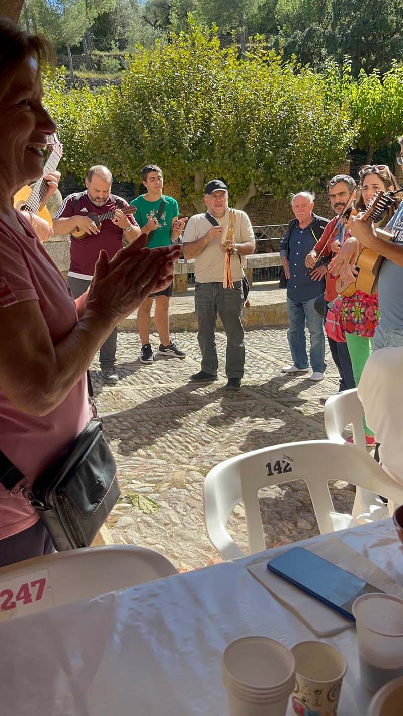 Los trovadores tortosinos visitaron a los grupos durante la comida.