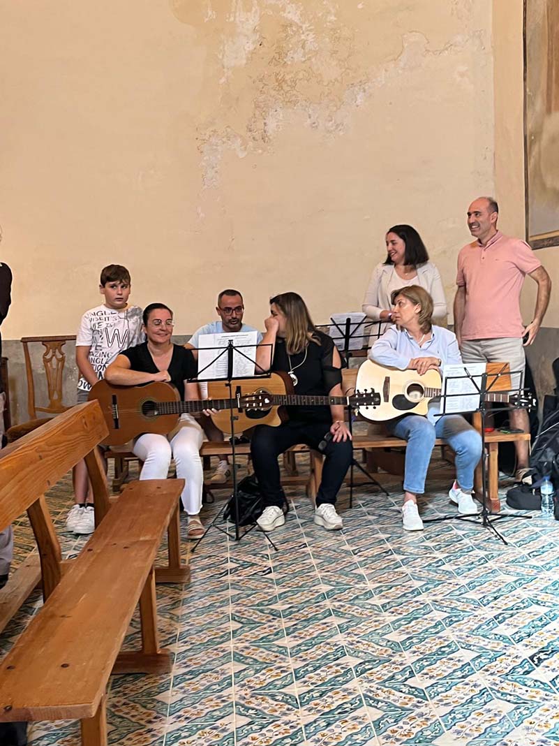 Un parón de los músicos durante el rosario cantado.