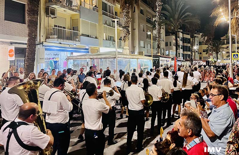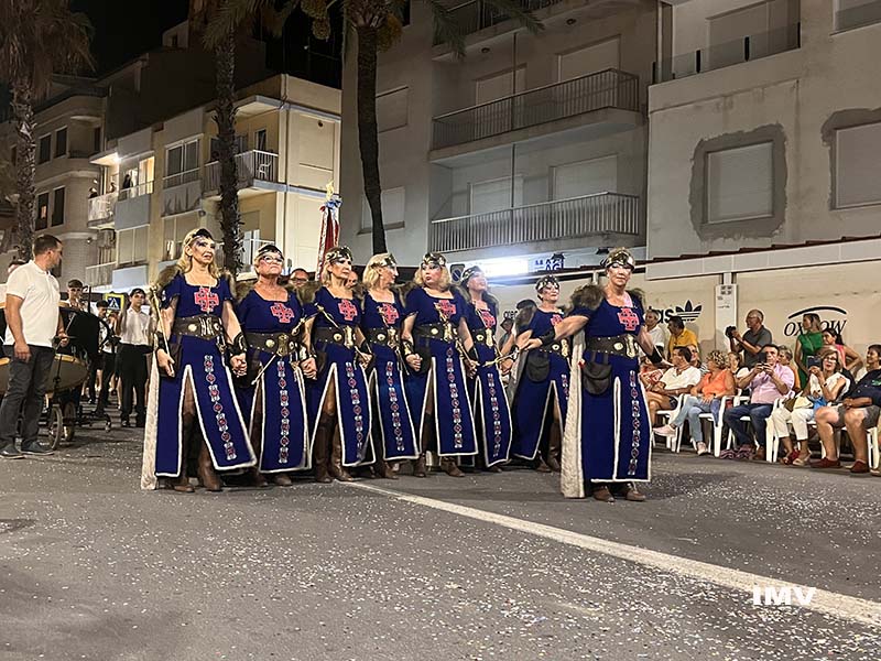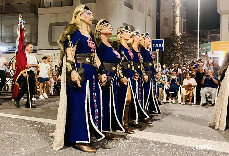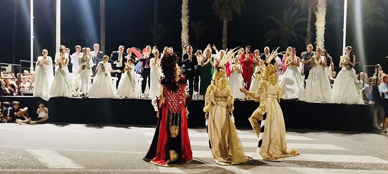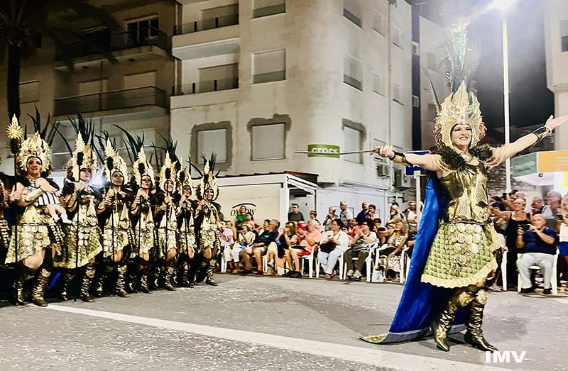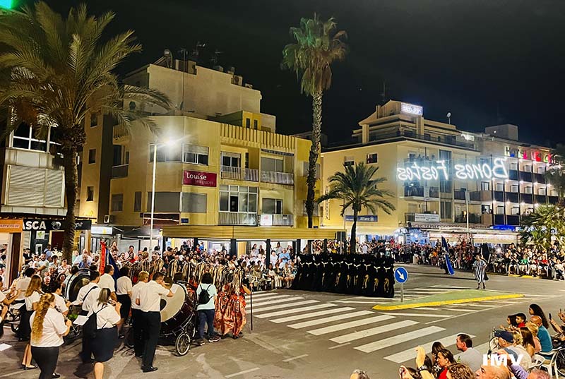 Al paso de las escuadras por él palco de las autoridades y la Reina de las fiestas patronales 2023, Isabel Marqués y su corte, los recibían de pie. Finalmente cerraron el desfile desde este punto, concretamente la avenida de la Mar. La corte de honor, reina y autoridades se dirigieron a la plaza de la Constitución.