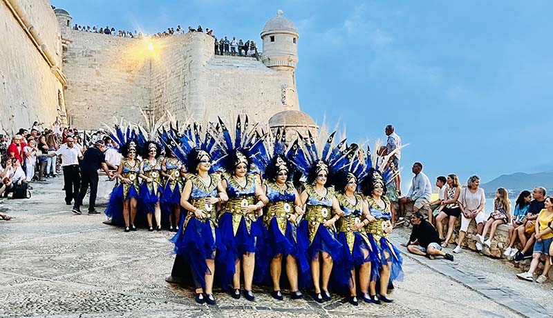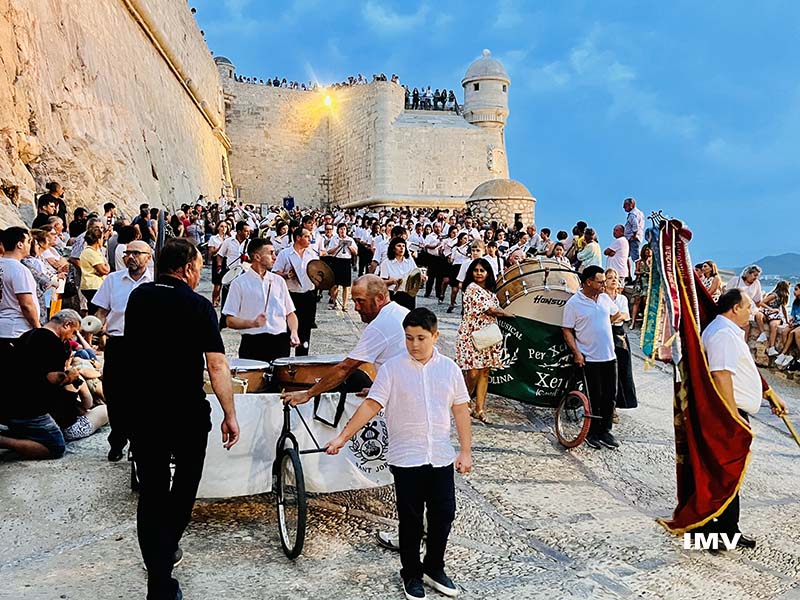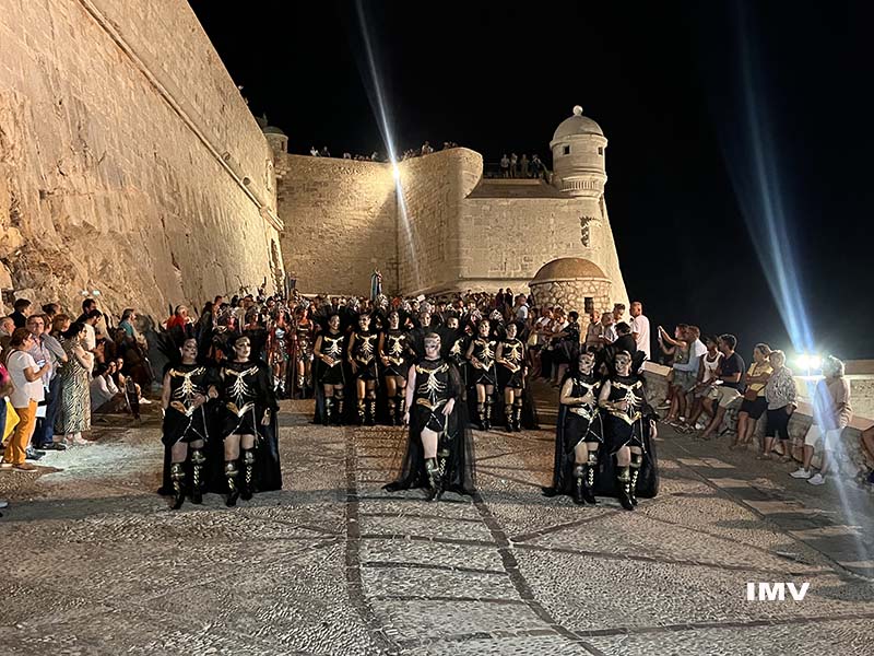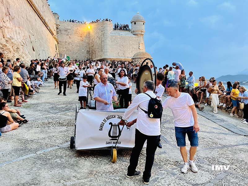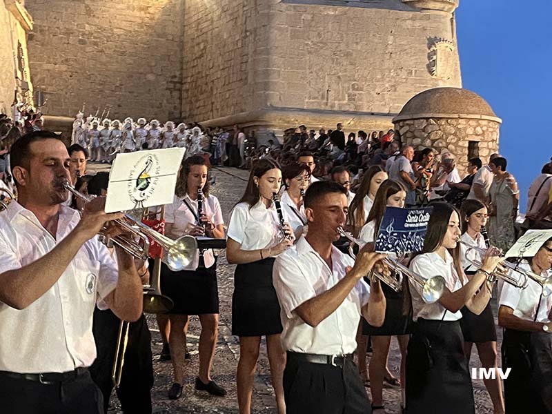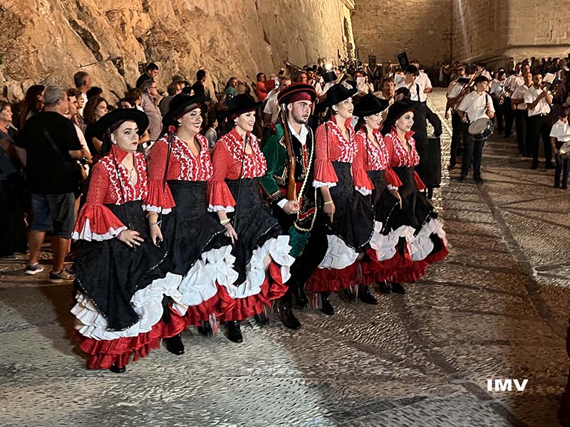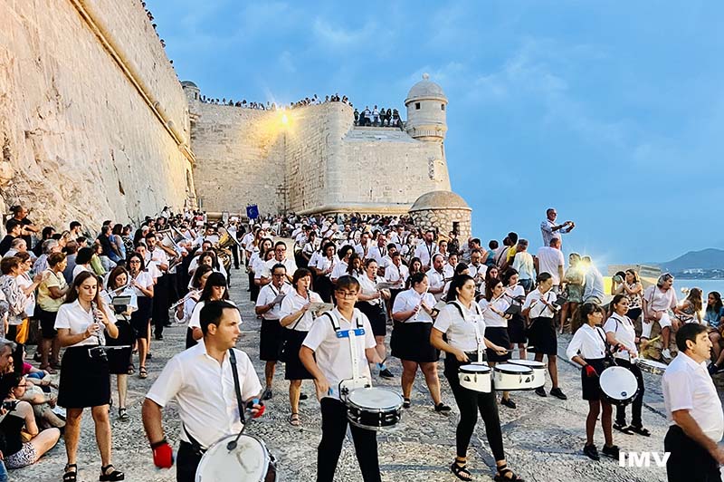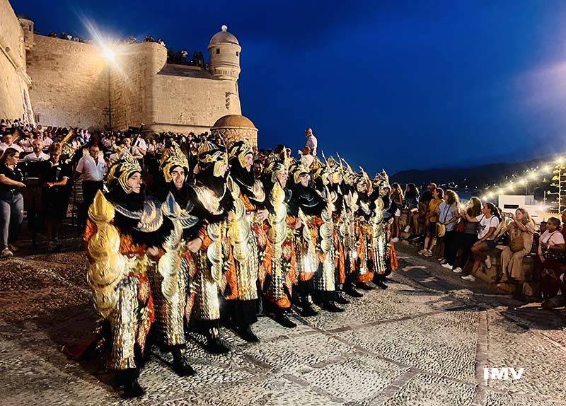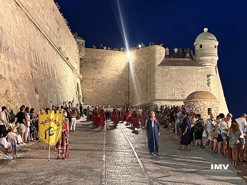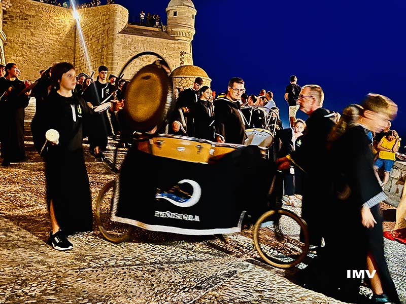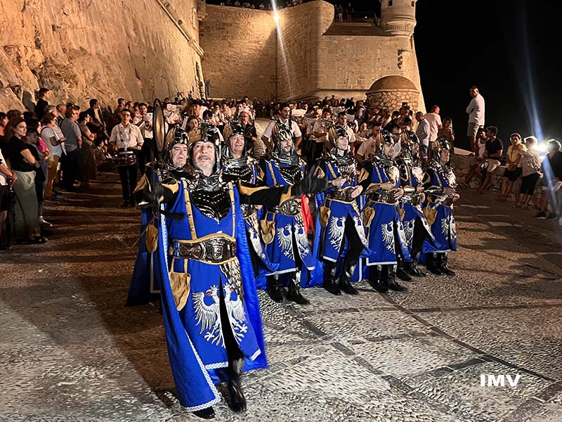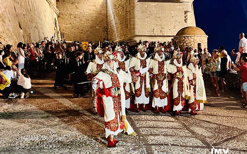 - A las 20:00 horas del domingo 17 de septiembre, se daba comienzo al penúltimo acto de las fiestas patronales de Peñíscola 2023. Las escuadras de Moros y Cristianos salían de la ciudadela del Papa Luna, acompañadas por músicos qué realizaban el sonido de sus pasos.