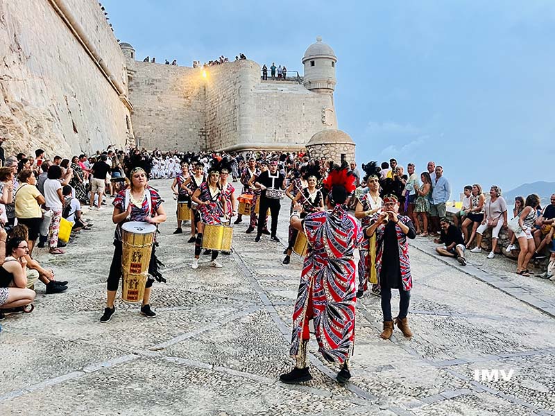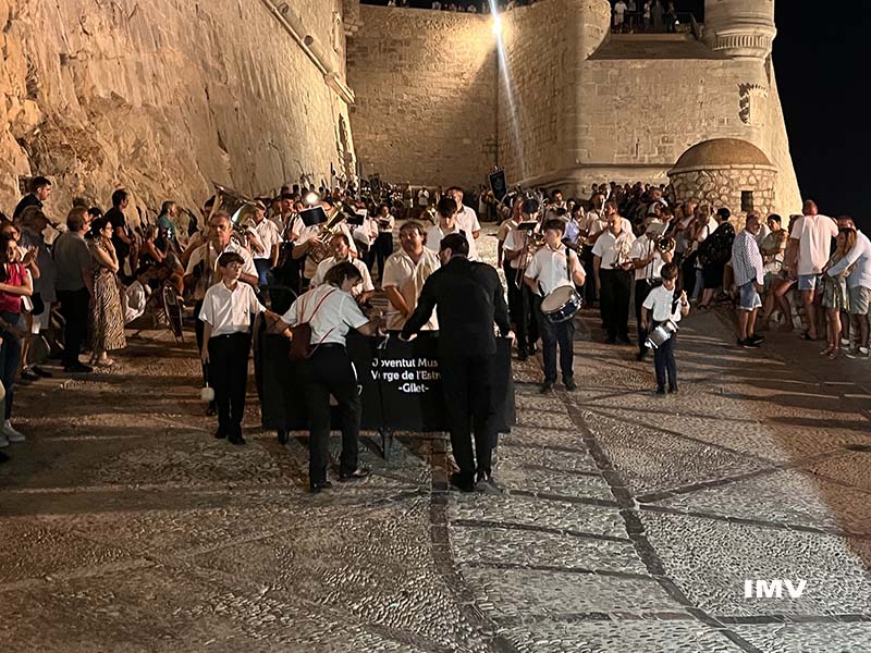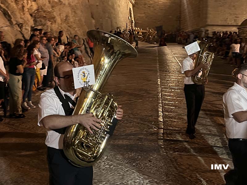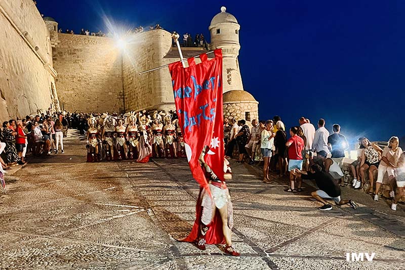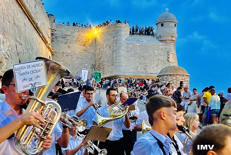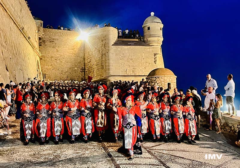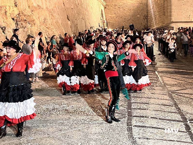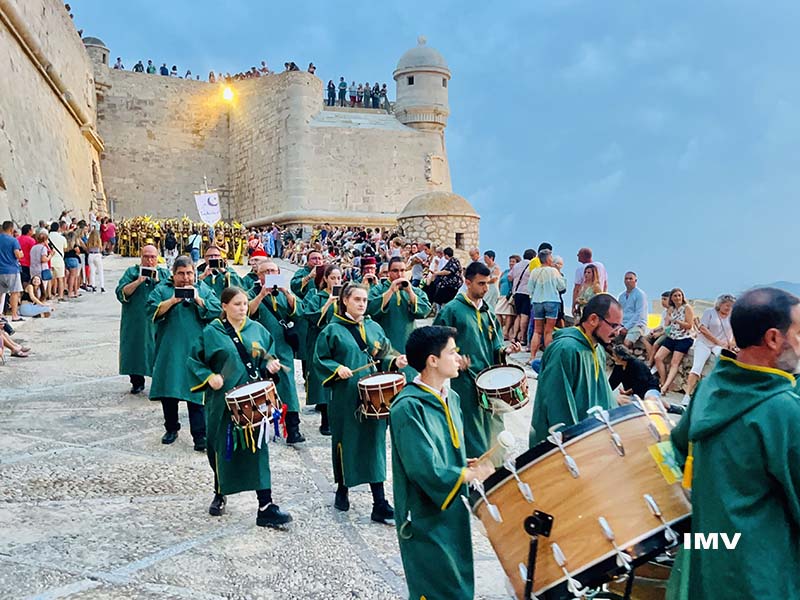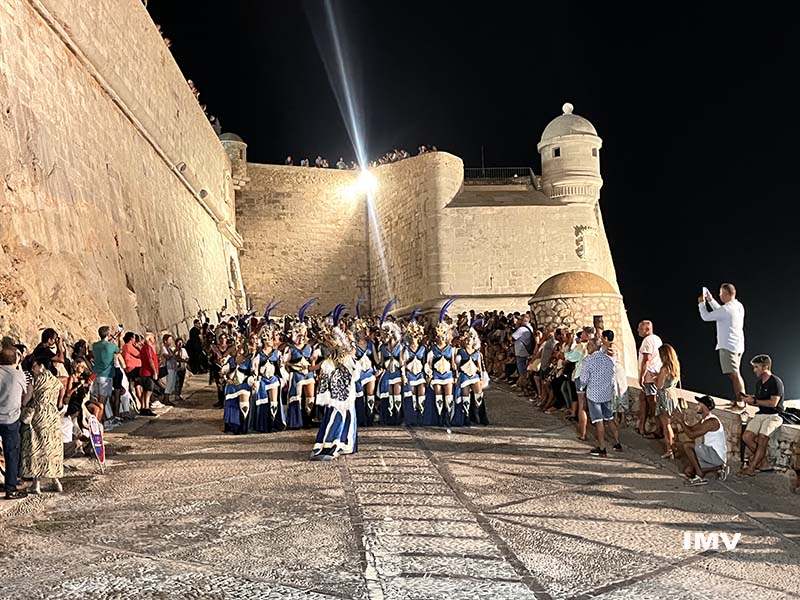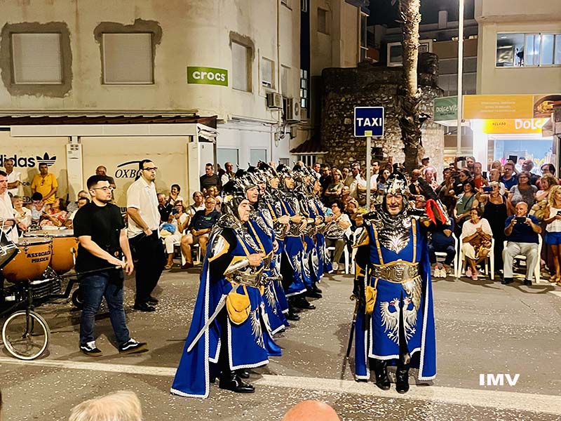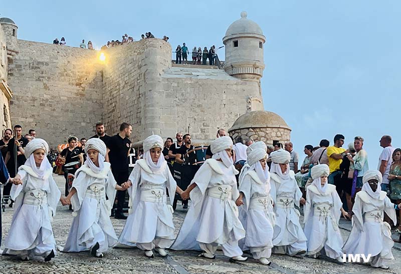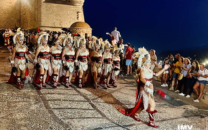 - A las 20:00 horas del domingo 17 de septiembre, se daba comienzo al penúltimo acto de las fiestas patronales de Peñíscola 2023. Las escuadras de Moros y Cristianos salían de la ciudadela del Papa Luna, acompañadas por músicos qué realizaban el sonido de sus pasos.