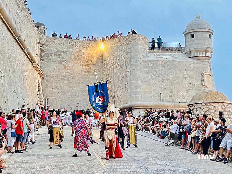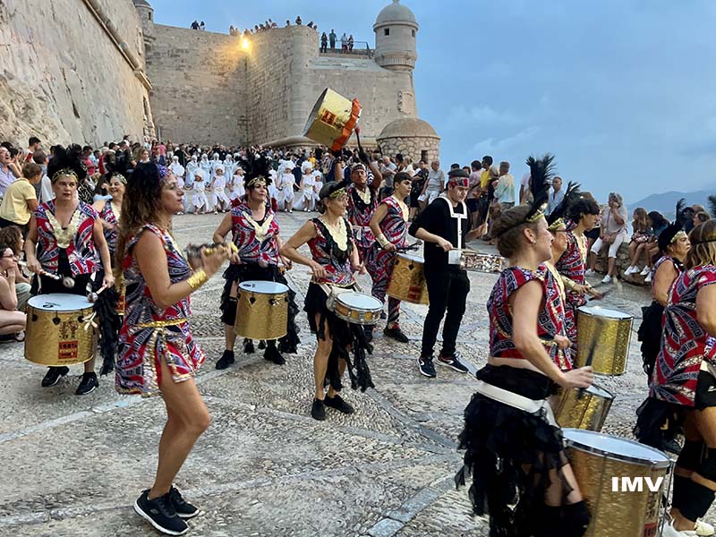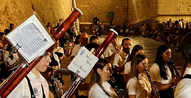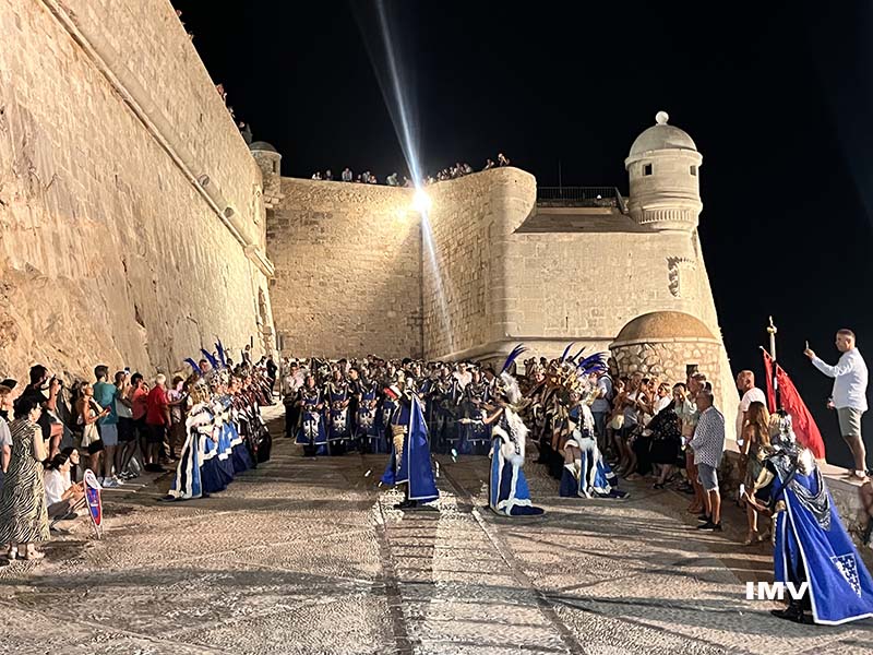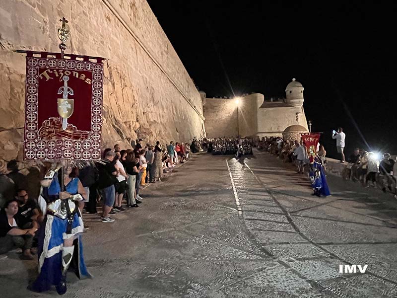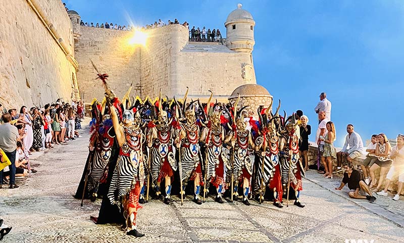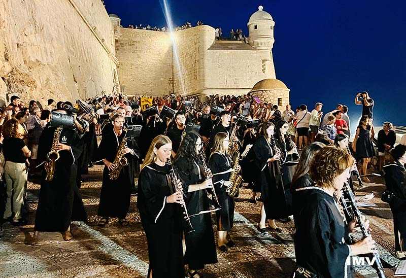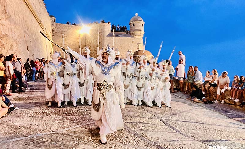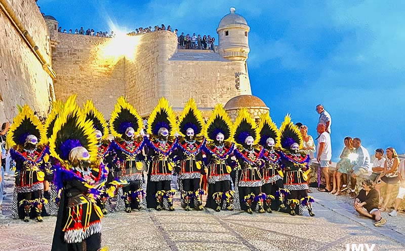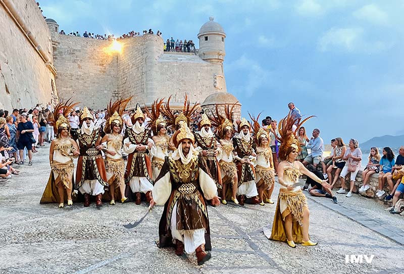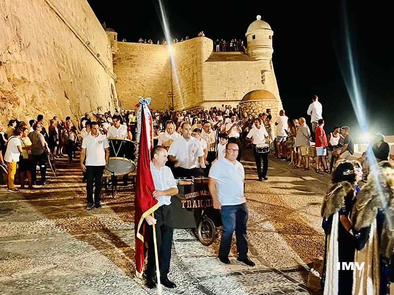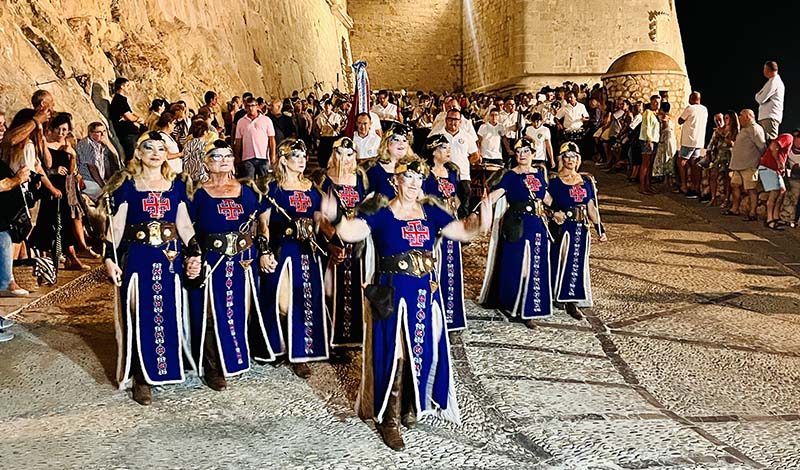 - A las 20:00 horas del domingo 17 de septiembre, se daba comienzo al penúltimo acto de las fiestas patronales de Peñíscola 2023. Las escuadras de Moros y Cristianos salían de la ciudadela del Papa Luna, acompañadas por músicos qué realizaban el sonido de sus pasos.