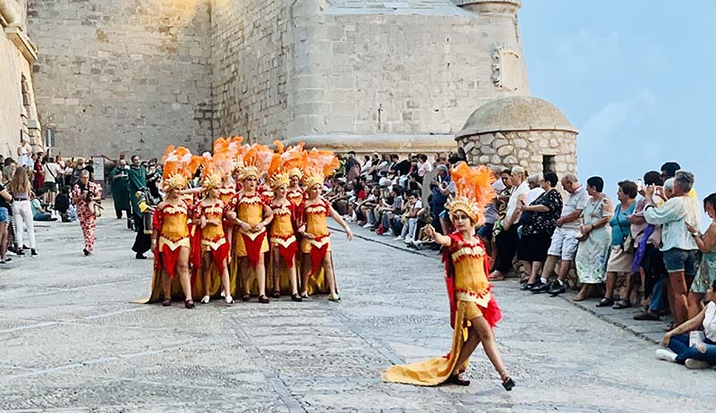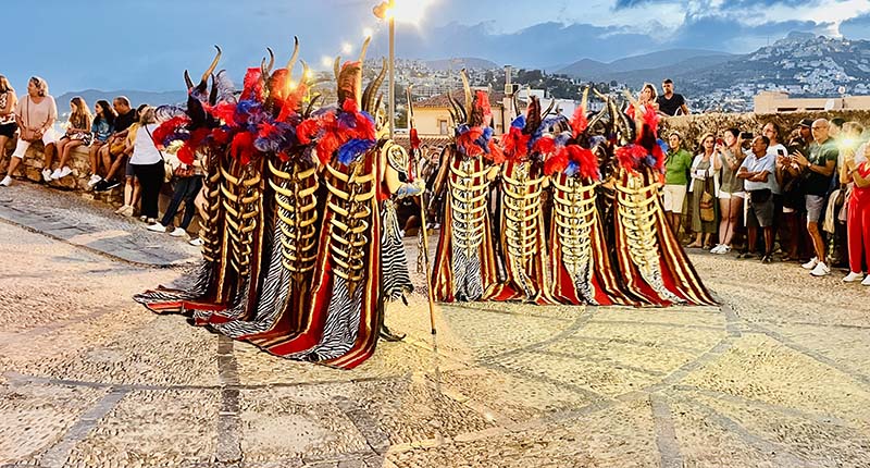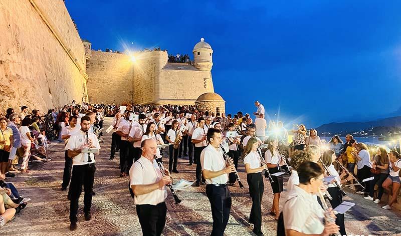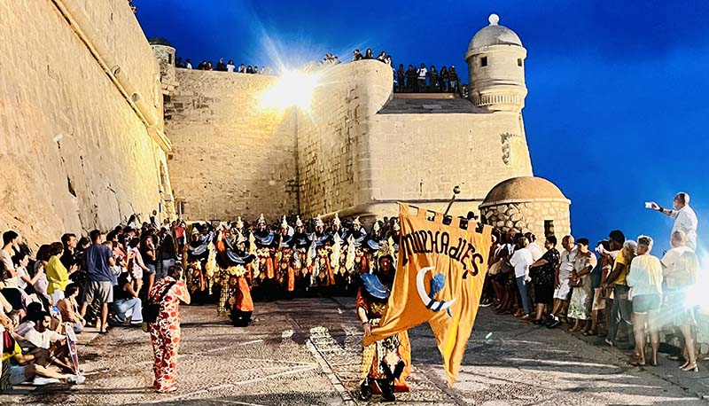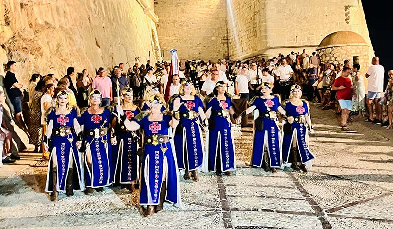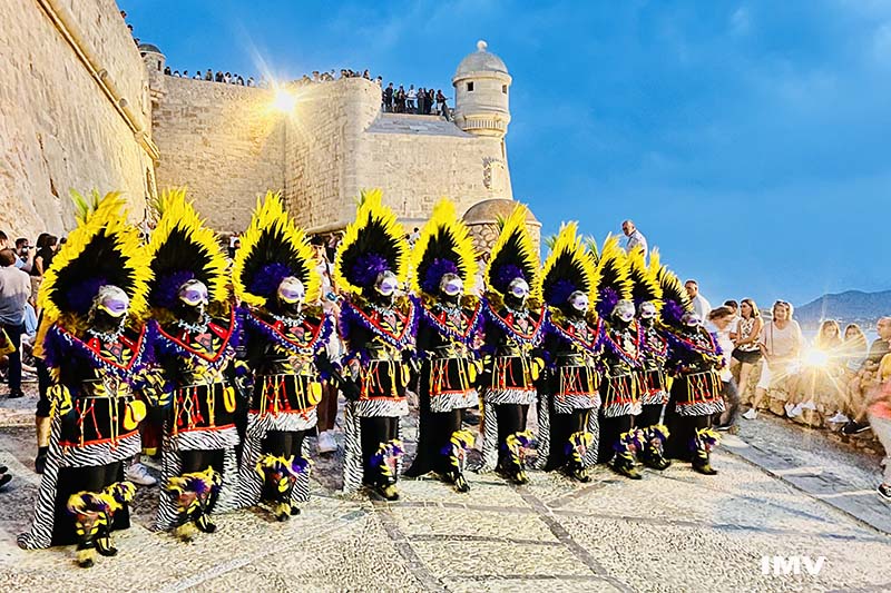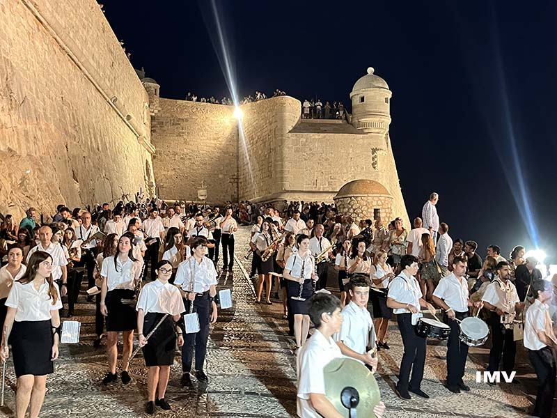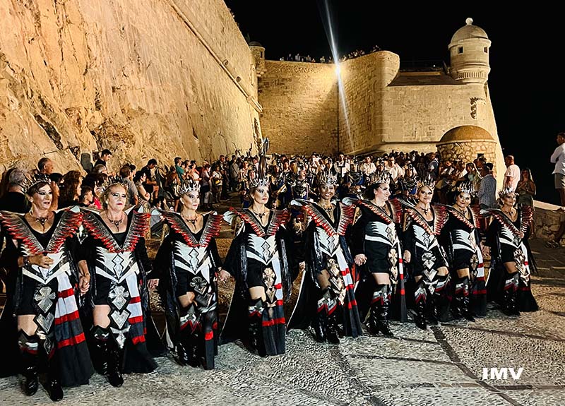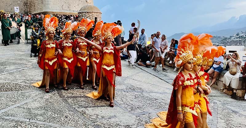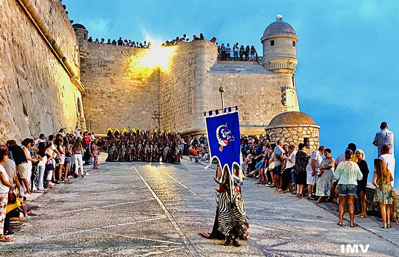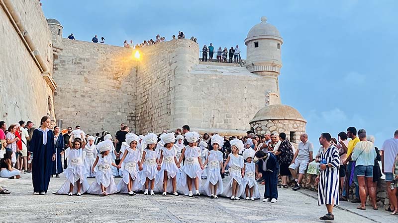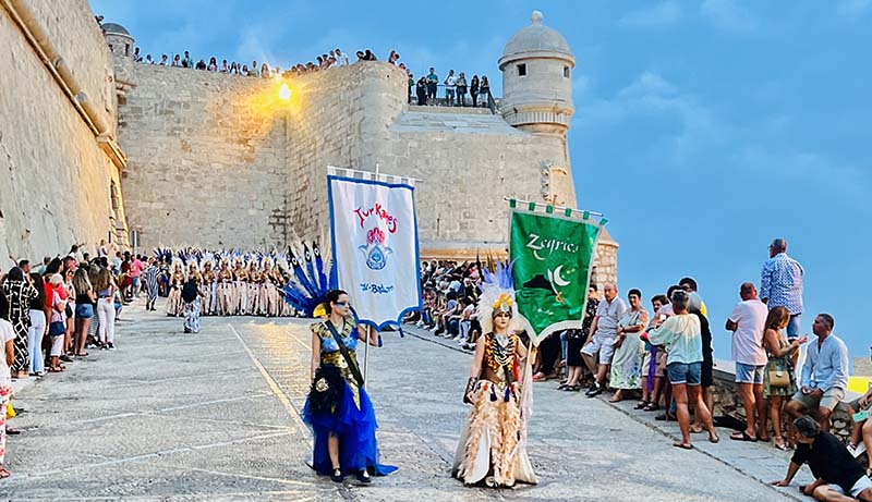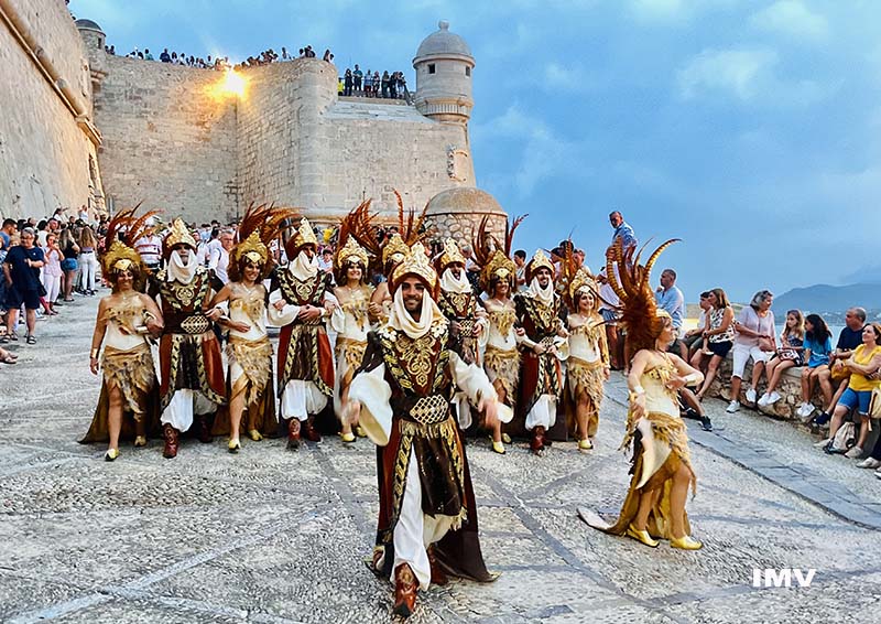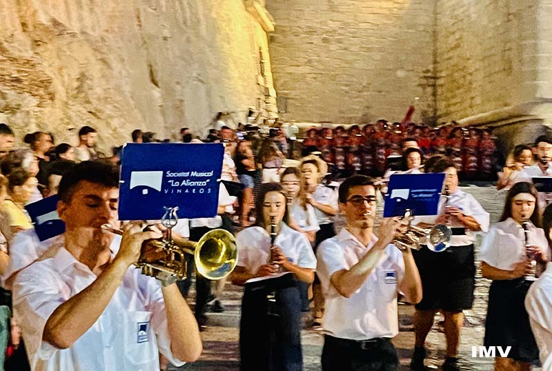 - A las 20:00 horas del domingo 17 de septiembre, se daba comienzo al penúltimo acto de las fiestas patronales de Peñíscola 2023. Las escuadras de Moros y Cristianos salían de la ciudadela del Papa Luna, acompañadas por músicos qué realizaban el sonido de sus pasos.