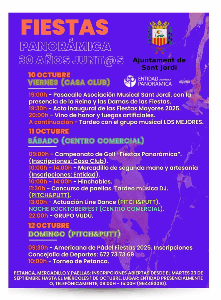 09:00h – Campeonato de Golf “Fiestas Panorámica”. (Inscripciones: Casa Club).
