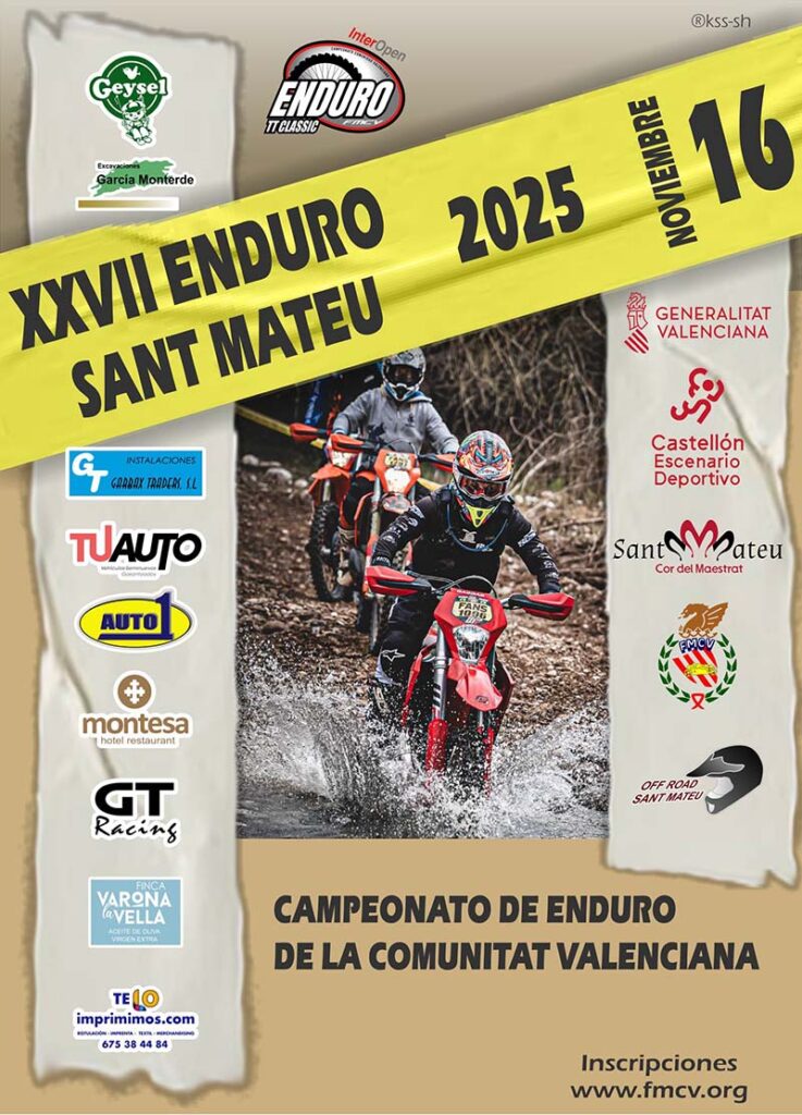 El pròxim 16 de novembre de 2025, Sant Mateu (Castelló) tornarà a convertir-se en el punt de trobada dels amants del motor amb la celebració del XXVII Enduro Sant Mateu 2025 i de l’Open Internacional TT Enduro Vintage 2025, organitzats per Off Road Sant Mateu.