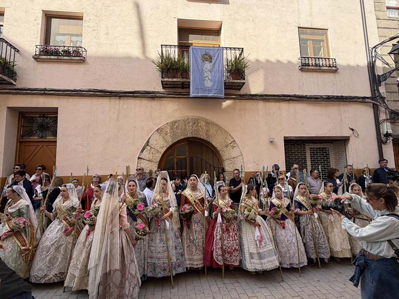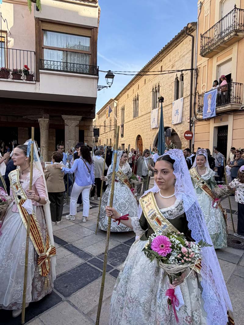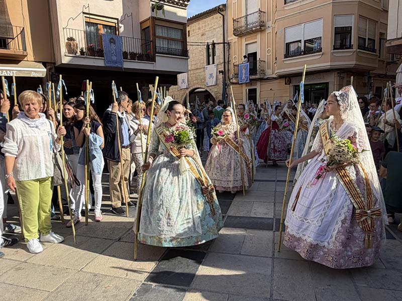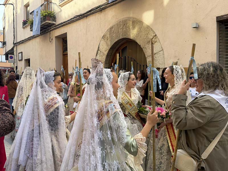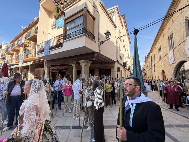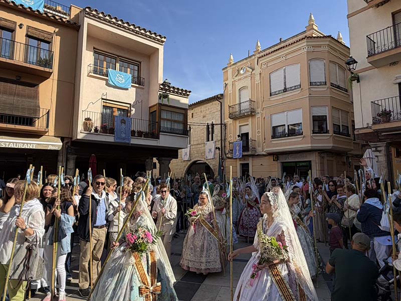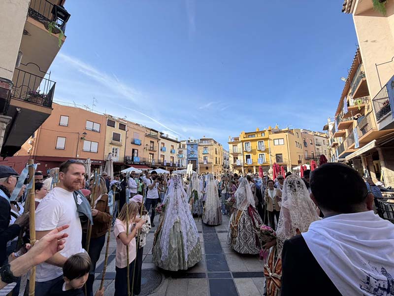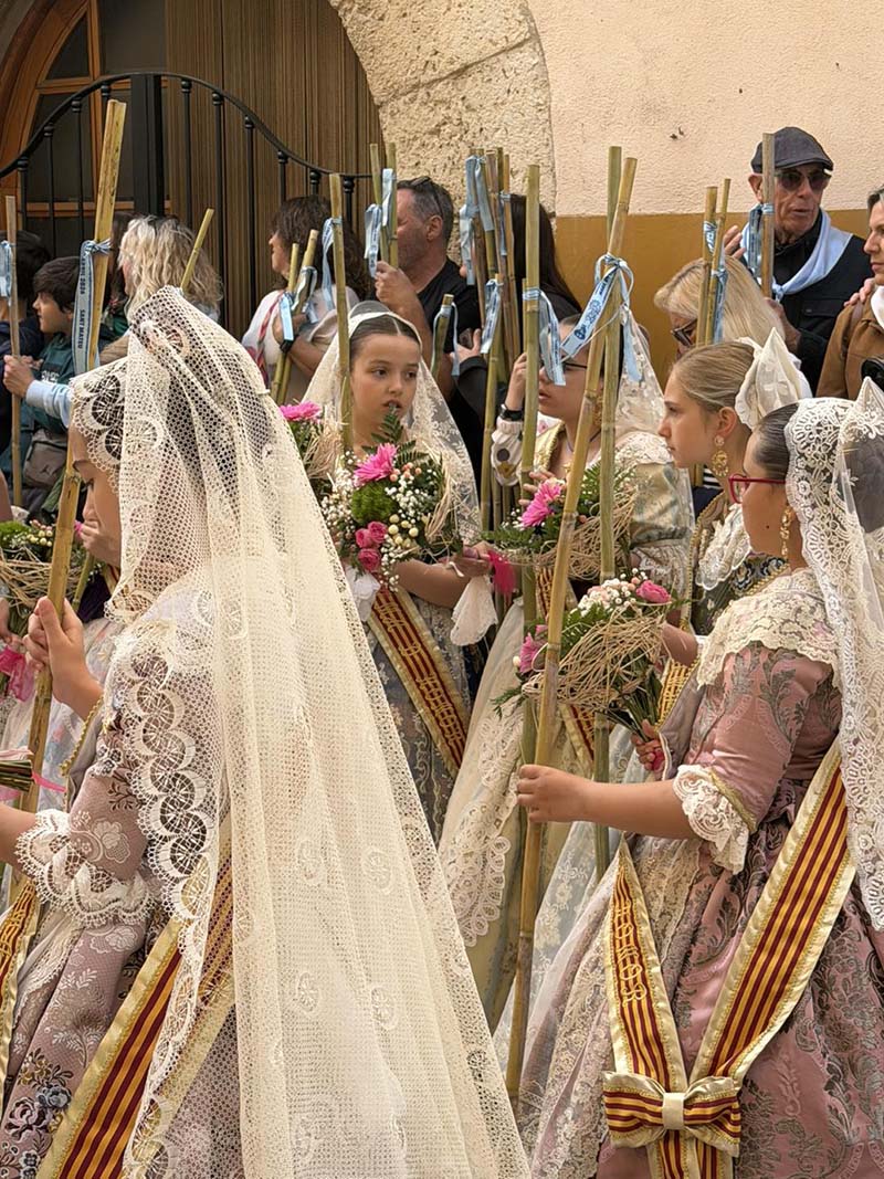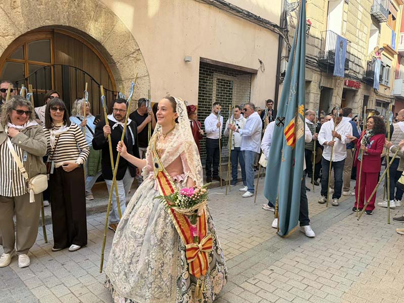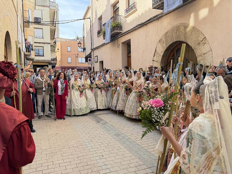 Posteriorment, a les portes de l’Ajuntament, es va dur a terme el repartiment de canyes, preludi de la baixada de la senyera i l’eixida de la processó, que va recórrer els carrers del poble acompanyada pel grup de dolçainers Guillem Sorrolla de Sant Mateu. Presidida per l’alcaldessa, Anna Besalduch, el diputat de Turisme, Andres Martinez i amb la participació de la reina i dames del municipi.