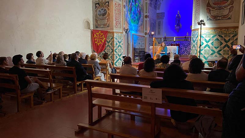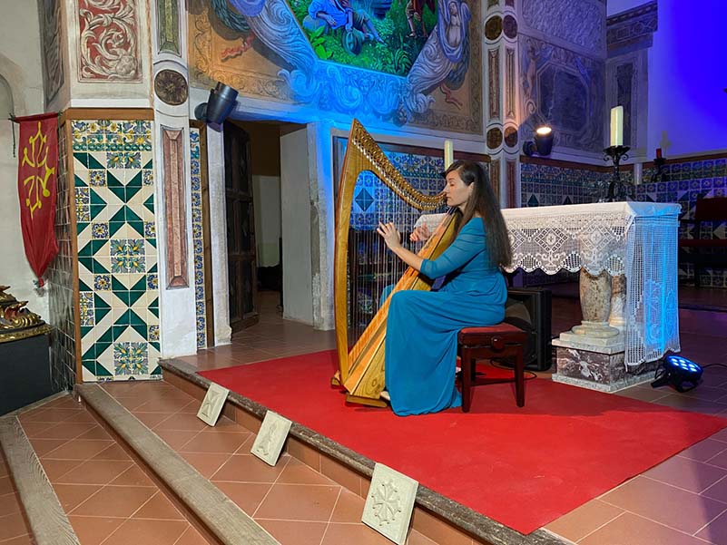Un extraordinari i inèdit concert va omplir l’església de l’ermitori i va ser el colofó final, on la música d’arpa d’Anna Amigó va delectar a tots els assistents “Resseguint les cançons dels trobadors i dels bons homes“, amb un repertori ple de sensibilitat, dolçor i amor, amb peces com el “Testament d’Amèlia”, “La Dama d’Aragó”, “el llibre vermell de Montserrat” i l’èxtasi amb el cant de “Lo Boier”, cançó tradicional occitana identificada com l’himne dels càtars.